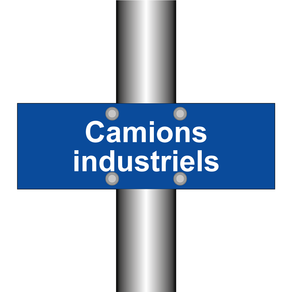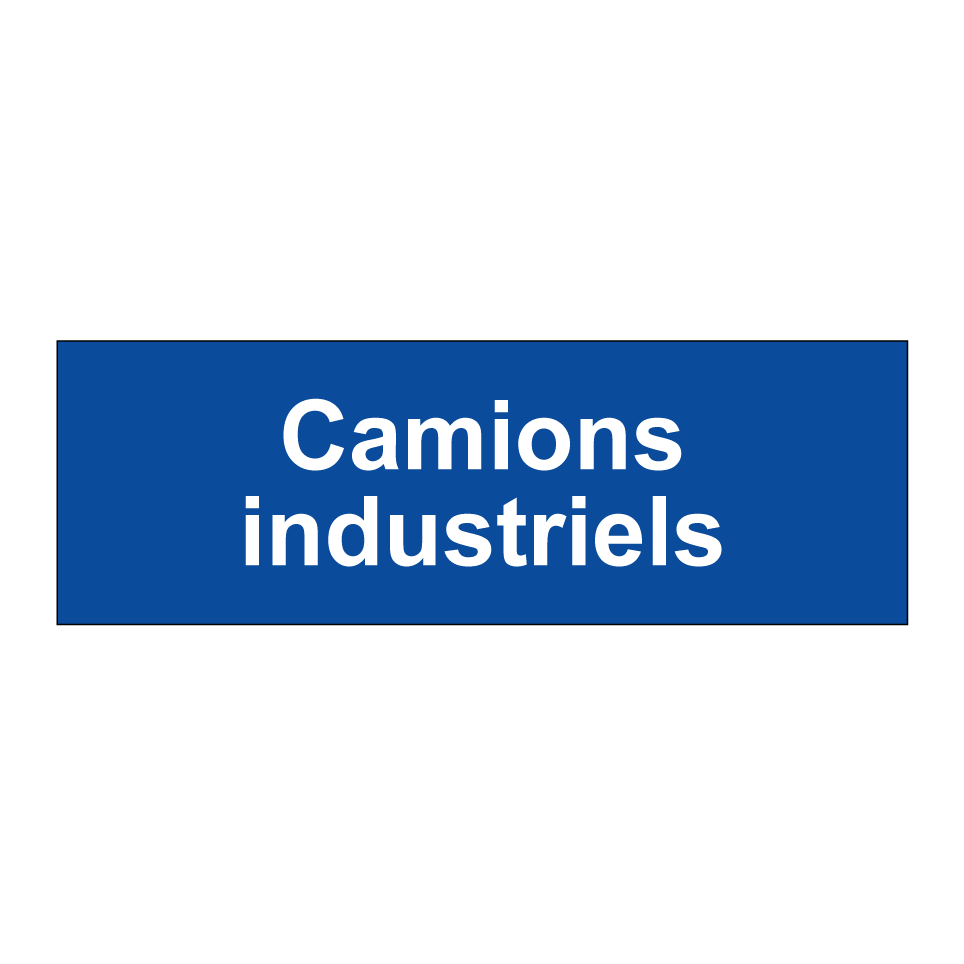 Le panneau "Camions industriels" est idéal pour indiquer les zones de stationnement réservées aux véhicules industriels. Ce panneau, avec son fond bleu et son texte blanc, est parfait pour être placé dans les parkings d'usines, les entrepôts ou les zones de chargement. Il assure une signalisation claire et efficace, facilitant la gestion du trafic et garantissant la sécurité. Ce panneau est essentiel pour organiser les espaces de stationnement et éviter les confusions, tout en respectant les réglementations locales.