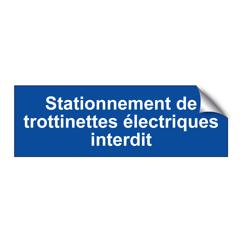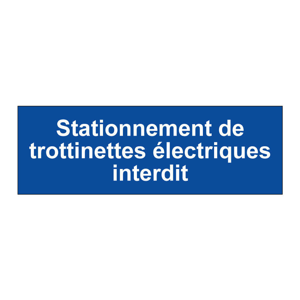 Panneau d'interdiction de stationner avec le texte : "Stationnement de trottinettes électriques interdit".