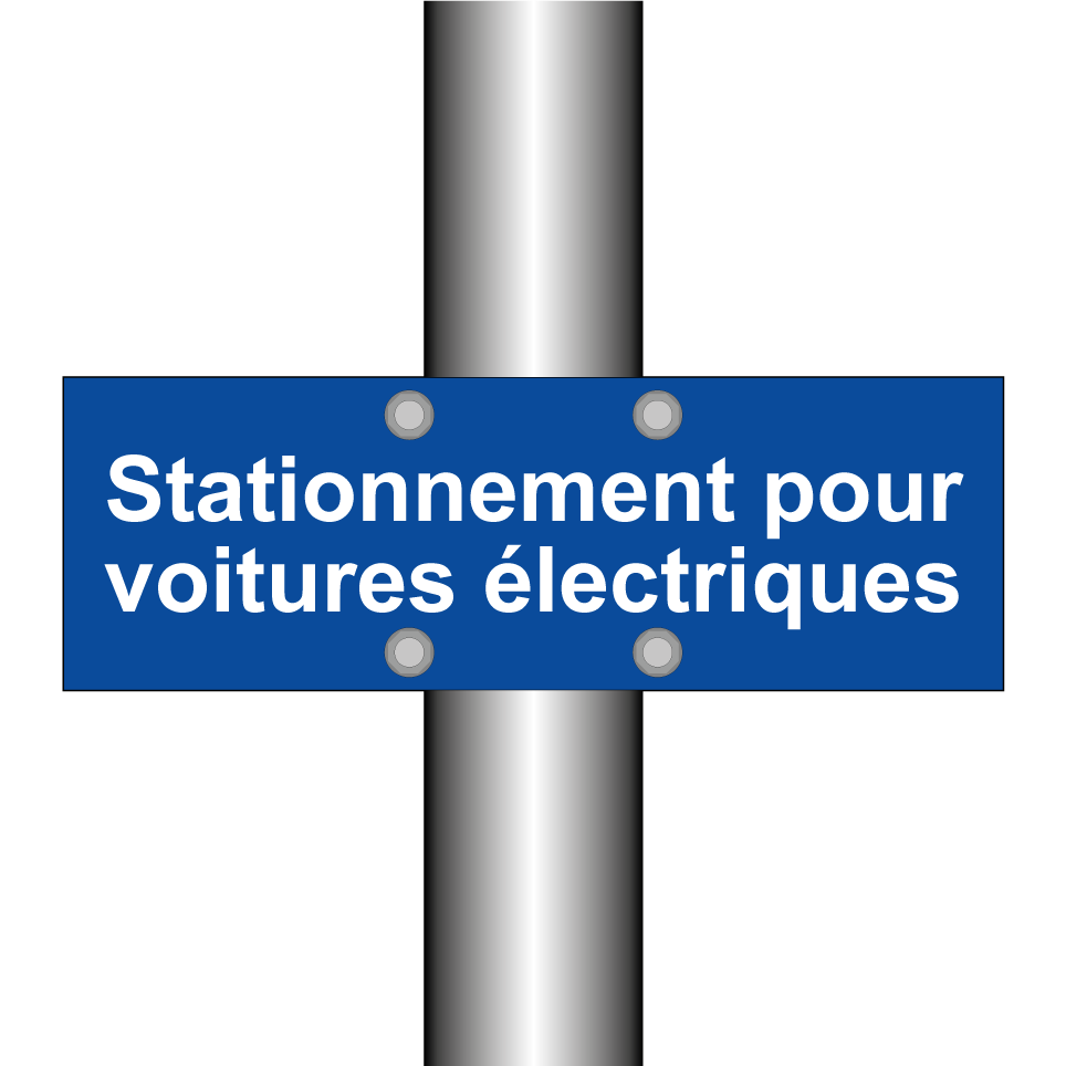Panneau de stationnement avec le texte : "Stationnement pour voitures électriques".
