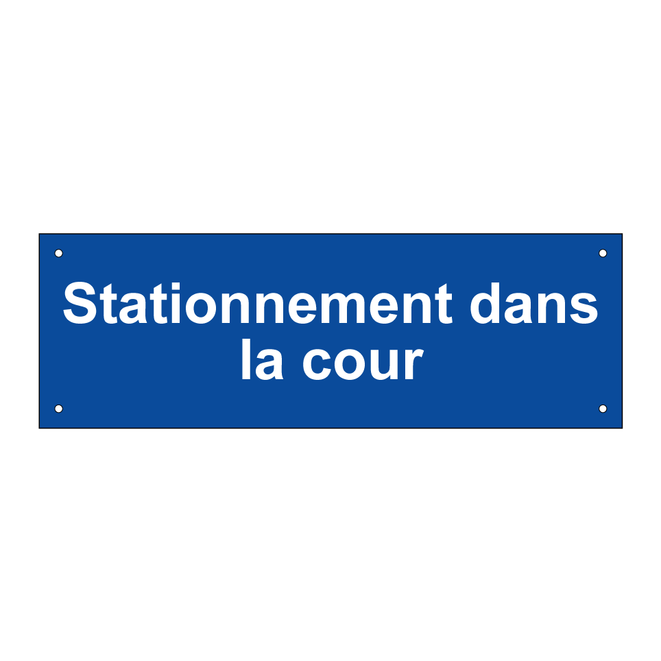 Ce panneau de stationnement est idéal pour indiquer les zones de parking autorisées dans les cours privées ou résidentielles. Avec son fond bleu et son texte blanc, il est facilement visible et attire l'attention des conducteurs. Ce panneau peut être installé à l'entrée d'une cour pour signaler clairement les espaces de stationnement disponibles. Il est parfait pour les immeubles d'habitation, les entreprises ou les propriétés privées, garantissant un stationnement organisé et sans encombrement.