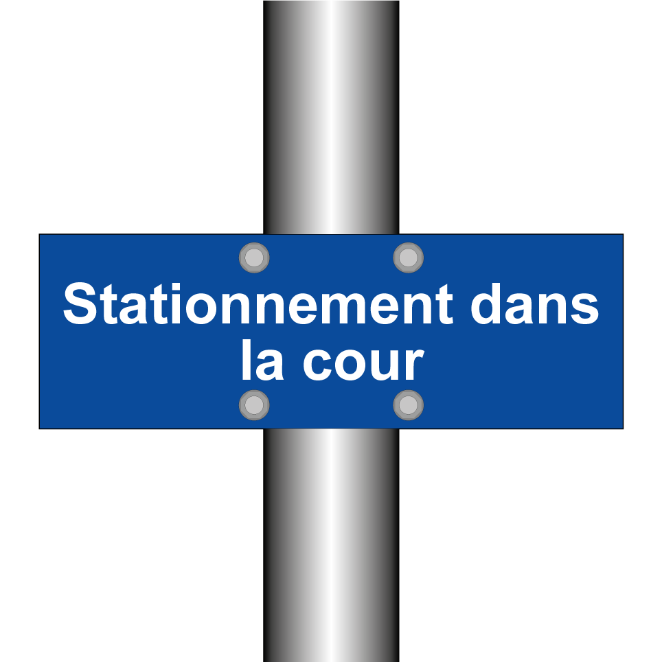 Panneau de stationnement avec le texte : "Stationnement dans la cour".
