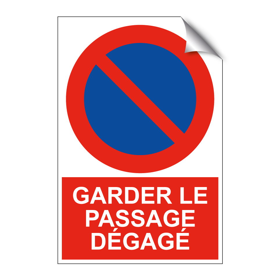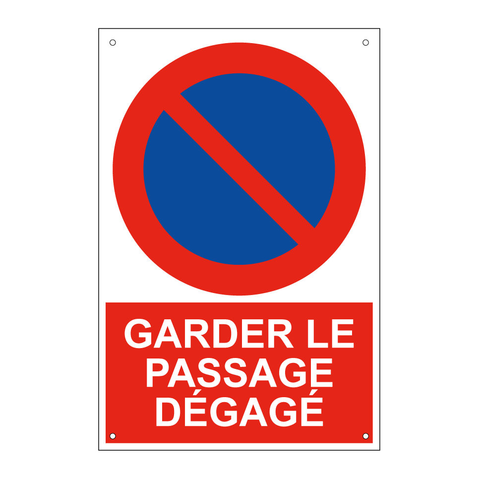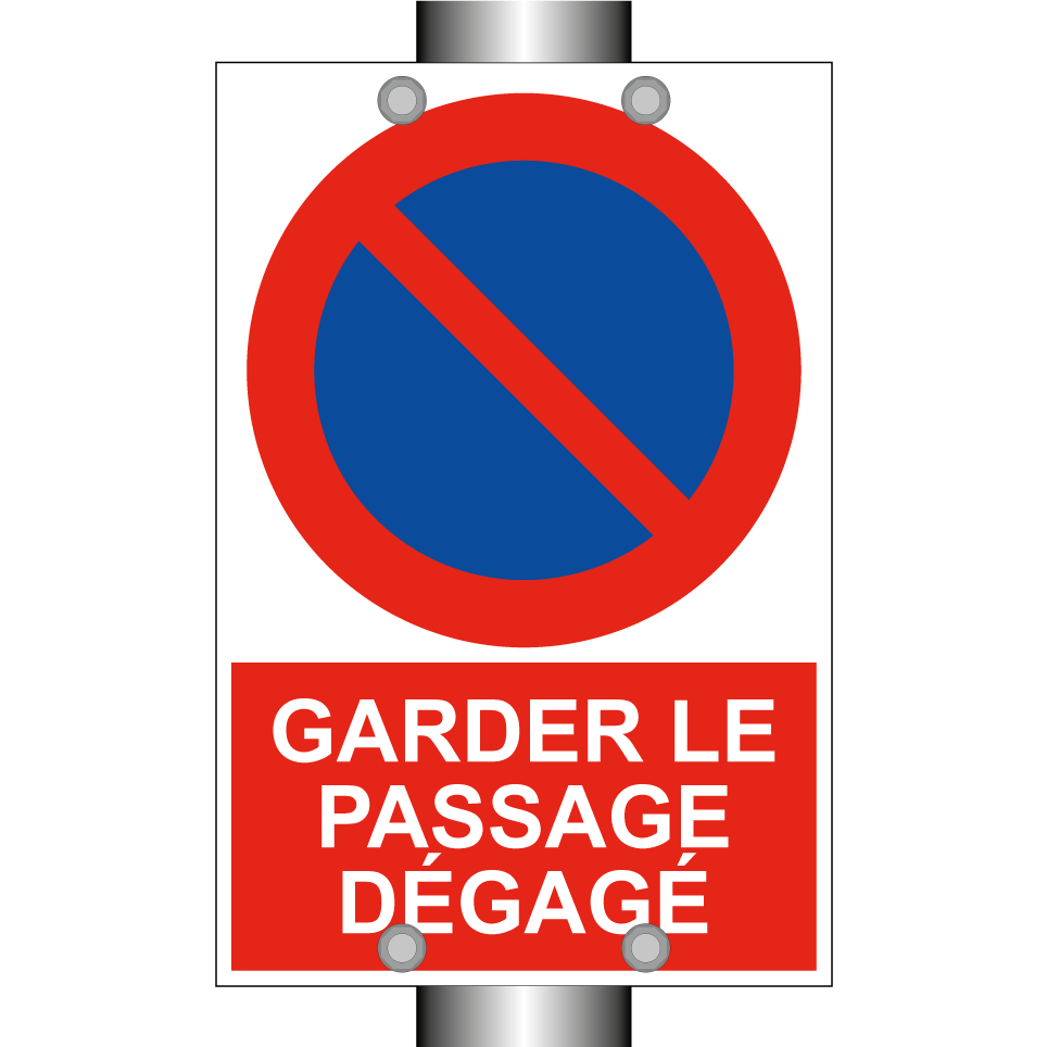 Panneau d'interdiction de stationner avec le texte : "Garder le passage dégagé" et une symbolique claire.