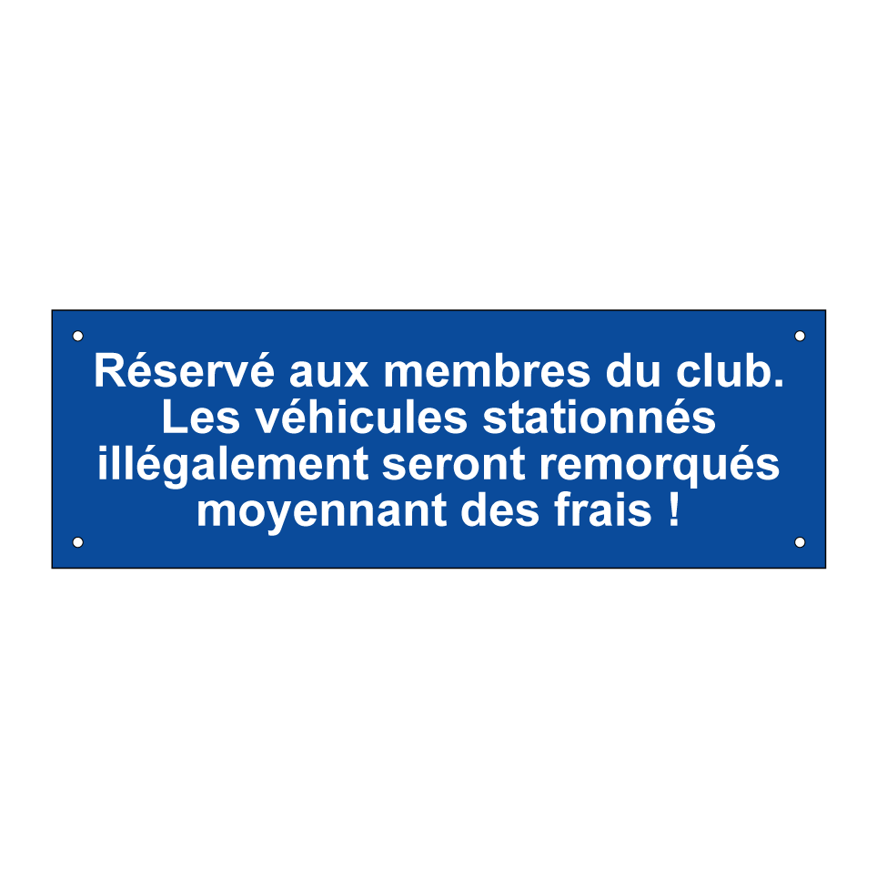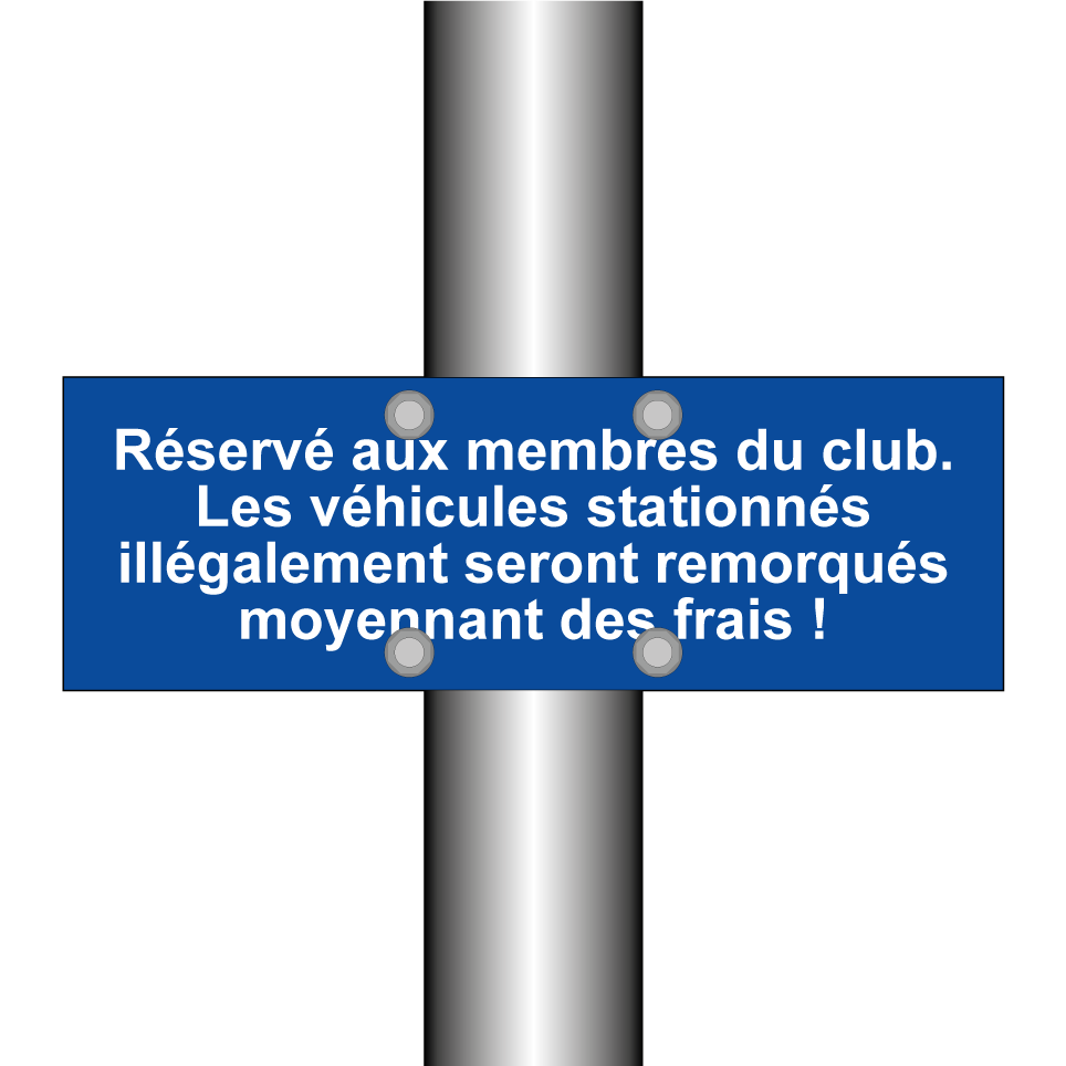 Panneau de stationnement avec le texte : "Réservé aux membres du club. Les véhicules stationnés illégalement seront remorqués moyennant des frais !".