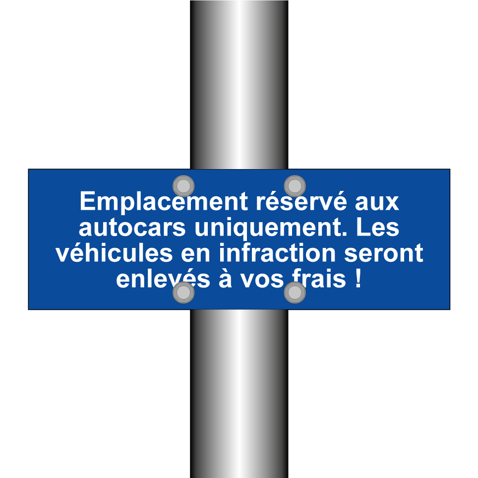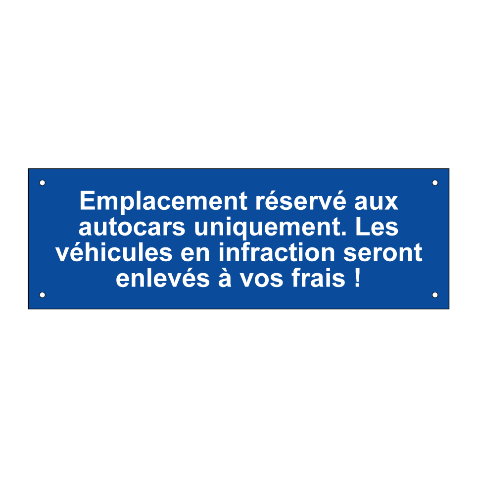 Panneau de stationnement avec le texte : "Emplacement réservé aux autocars uniquement. Les véhicules en infraction seront enlevés à vos frais !".