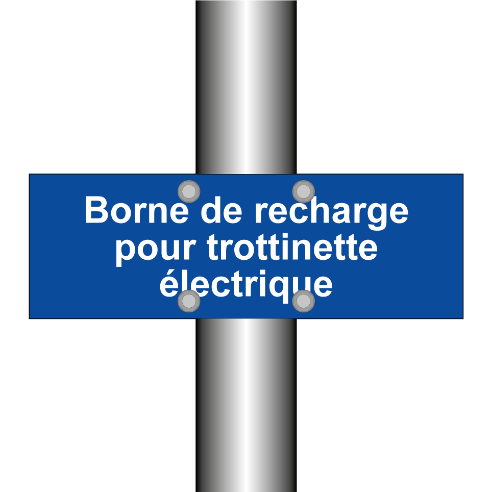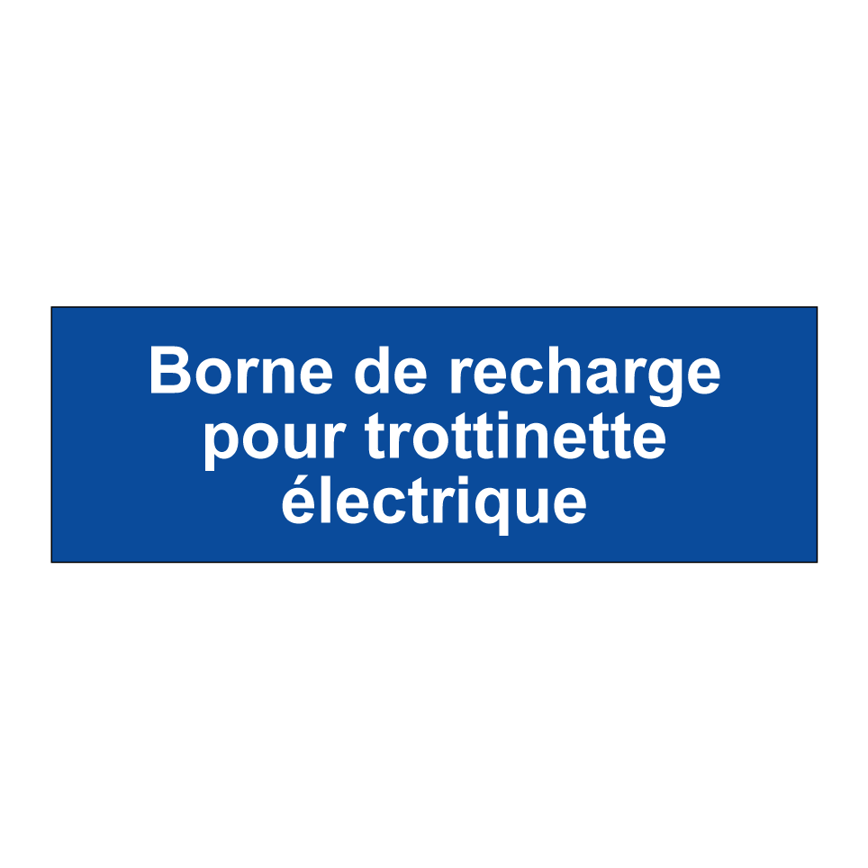 Panneau de stationnement avec le texte : "Borne de recharge pour trottinette électrique".