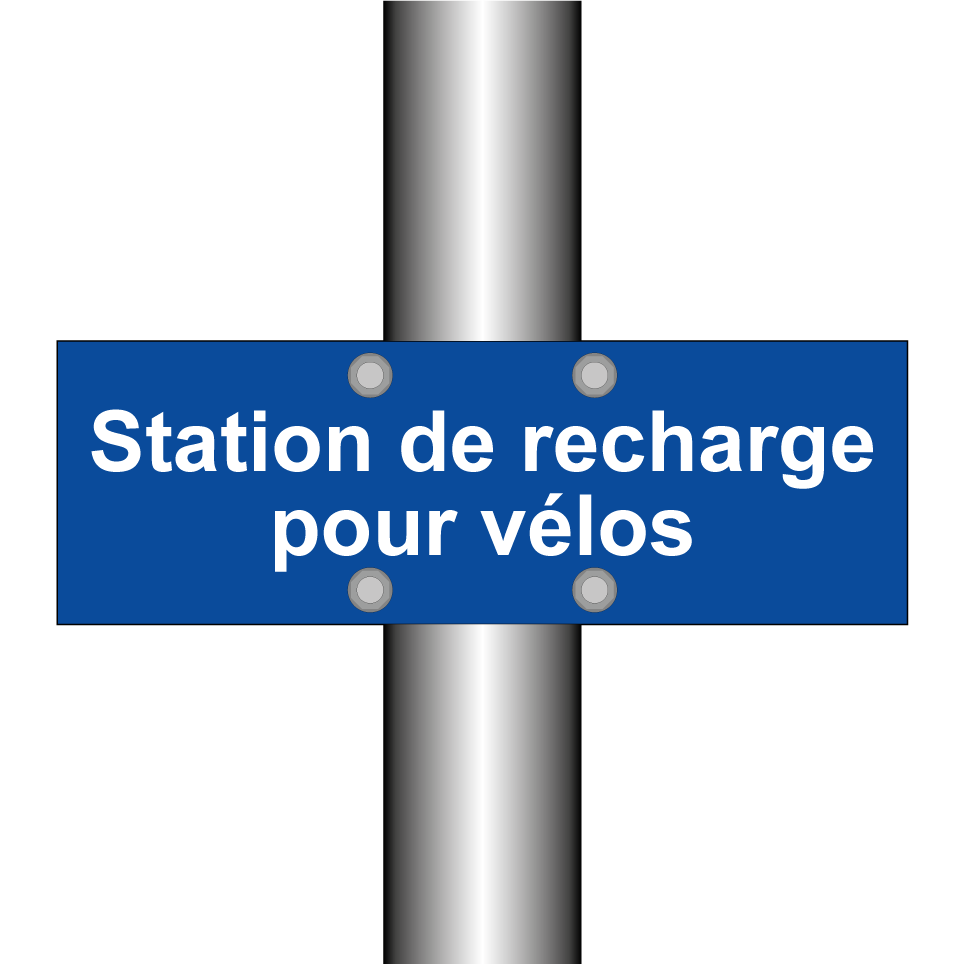 Ce panneau de stationnement pour vélos est idéal pour les zones urbaines, les parcs, et les campus universitaires. Il sert à indiquer clairement les emplacements dédiés à la recharge des vélos électriques, facilitant ainsi l'accès à une mobilité durable. Grâce à sa couleur bleue et son texte blanc, il est facilement repérable et peut être installé à proximité des bornes de recharge, des parkings à vélos ou des entrées de bâtiments. Ce panneau contribue à promouvoir l'utilisation des transports écologiques.