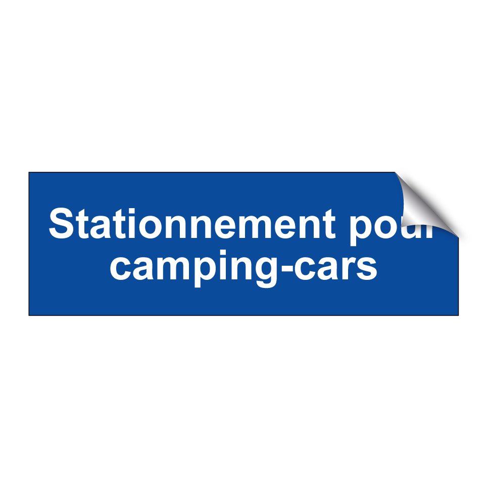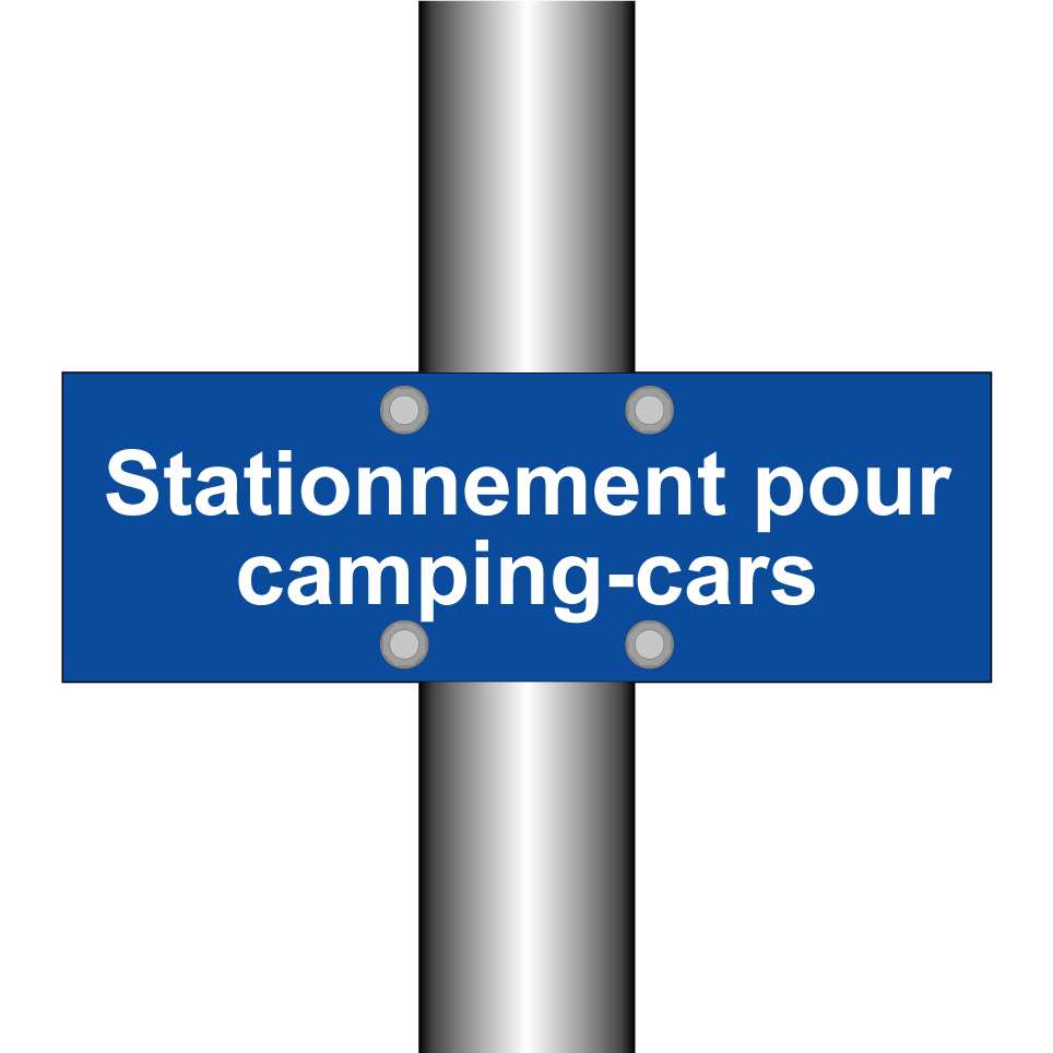 Panneau de stationnement avec le texte : "Stationnement pour camping-cars".