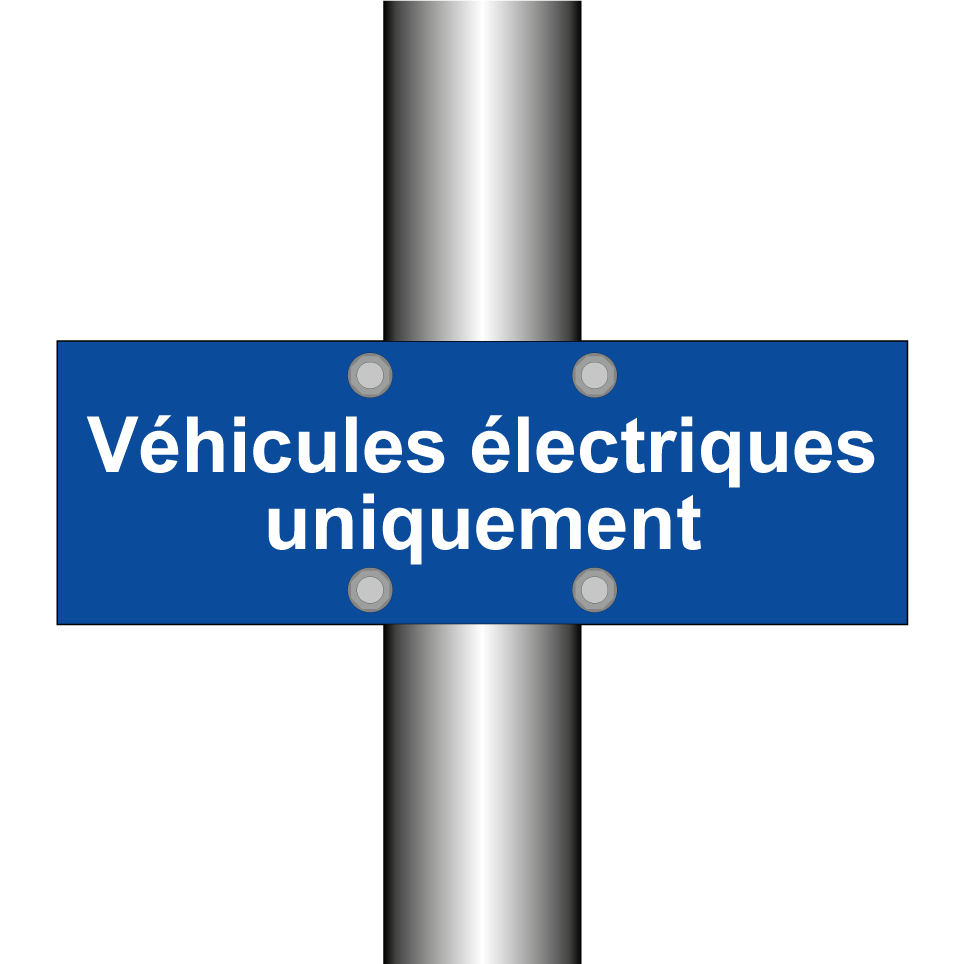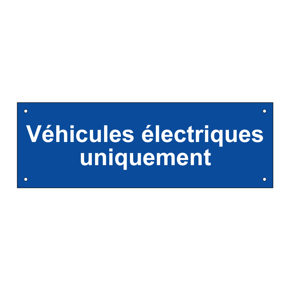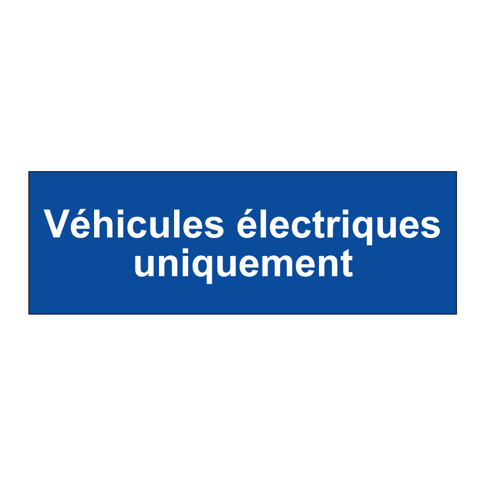 Panneau de stationnement avec le texte : "Véhicules électriques uniquement".
