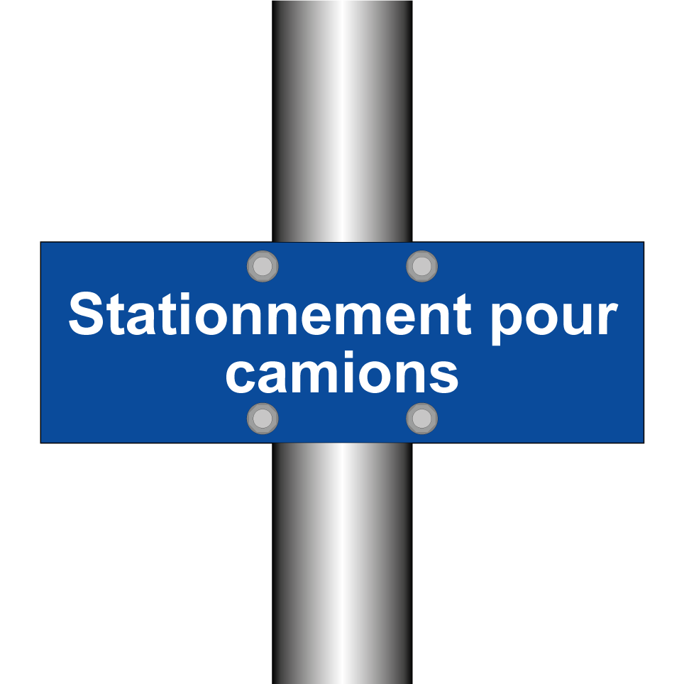 Panneau de stationnement avec le texte : "Stationnement pour camions".