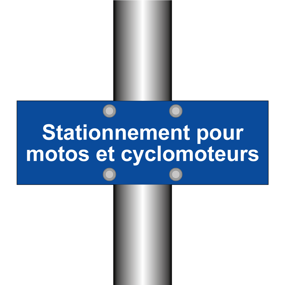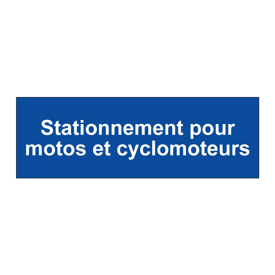 Panneau de stationnement avec le texte : "Stationnement pour motos et cyclomoteurs".