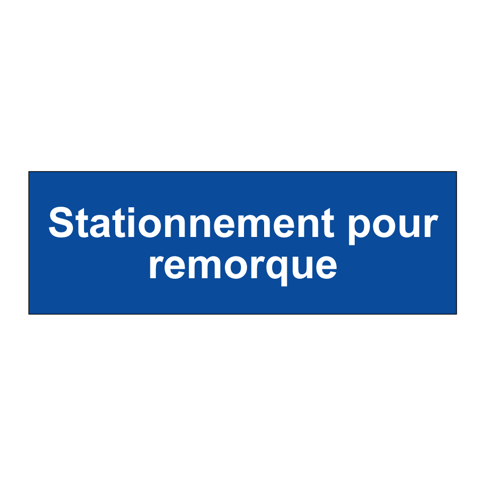 Panneau de stationnement avec le texte : "Stationnement pour remorque".