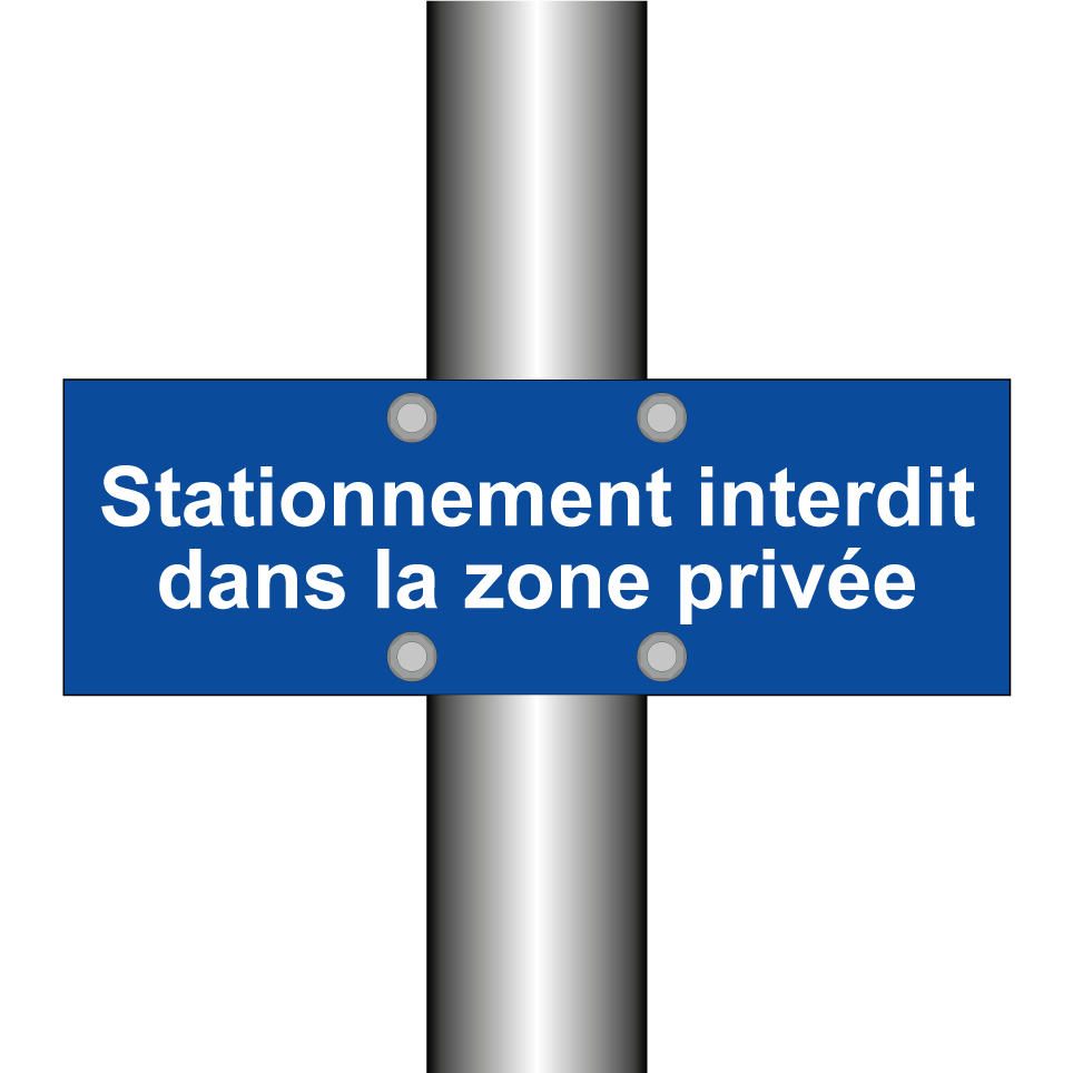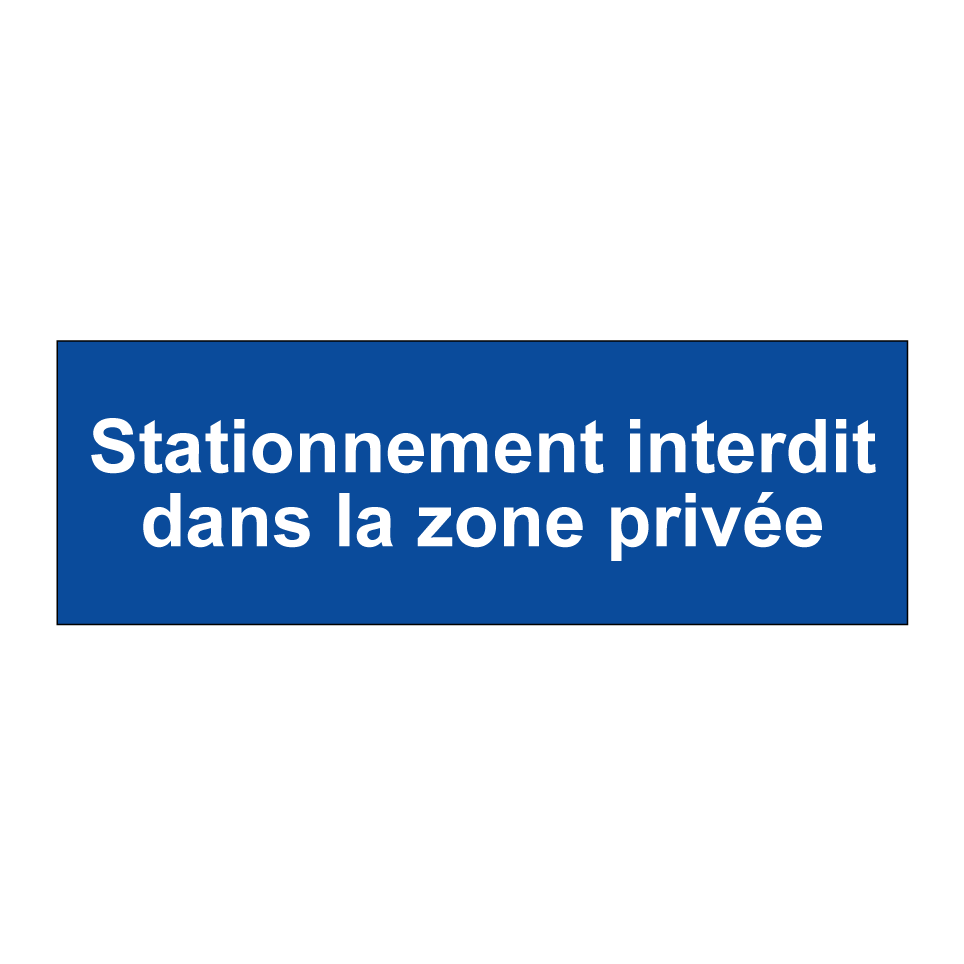 Panneau d'interdiction de stationner avec le texte : "Stationnement interdit dans la zone privée".