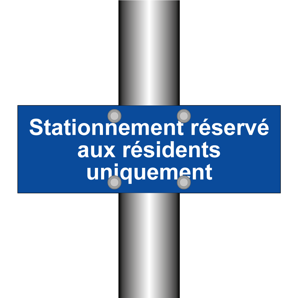 Ce panneau de stationnement est idéal pour les zones résidentielles où l'accès doit être limité aux habitants. Il est parfait pour être installé à l'entrée de parkings privés ou dans des rues résidentielles afin de garantir que seuls les résidents peuvent se garer. Avec son fond bleu et son texte blanc, il est facilement visible et assure une communication claire des règles de stationnement. Ce panneau contribue à maintenir l'ordre et à éviter les stationnements non autorisés dans les zones réservées.