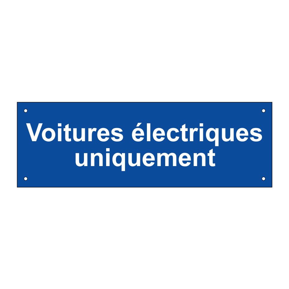 Ce panneau est idéal pour indiquer des espaces de stationnement réservés aux véhicules électriques. Parfait pour les parkings d'entreprises, centres commerciaux ou zones résidentielles, il assure une gestion efficace des places de stationnement. Grâce à sa couleur bleue et son texte blanc, il est facilement visible et compréhensible pour les conducteurs. Installez-le à l'entrée des parkings ou à proximité des bornes de recharge pour garantir un accès exclusif aux voitures électriques. Ce panneau contribue à promouvoir l'utilisation de véhicules écologiques et à organiser l'espace de manière optimale.