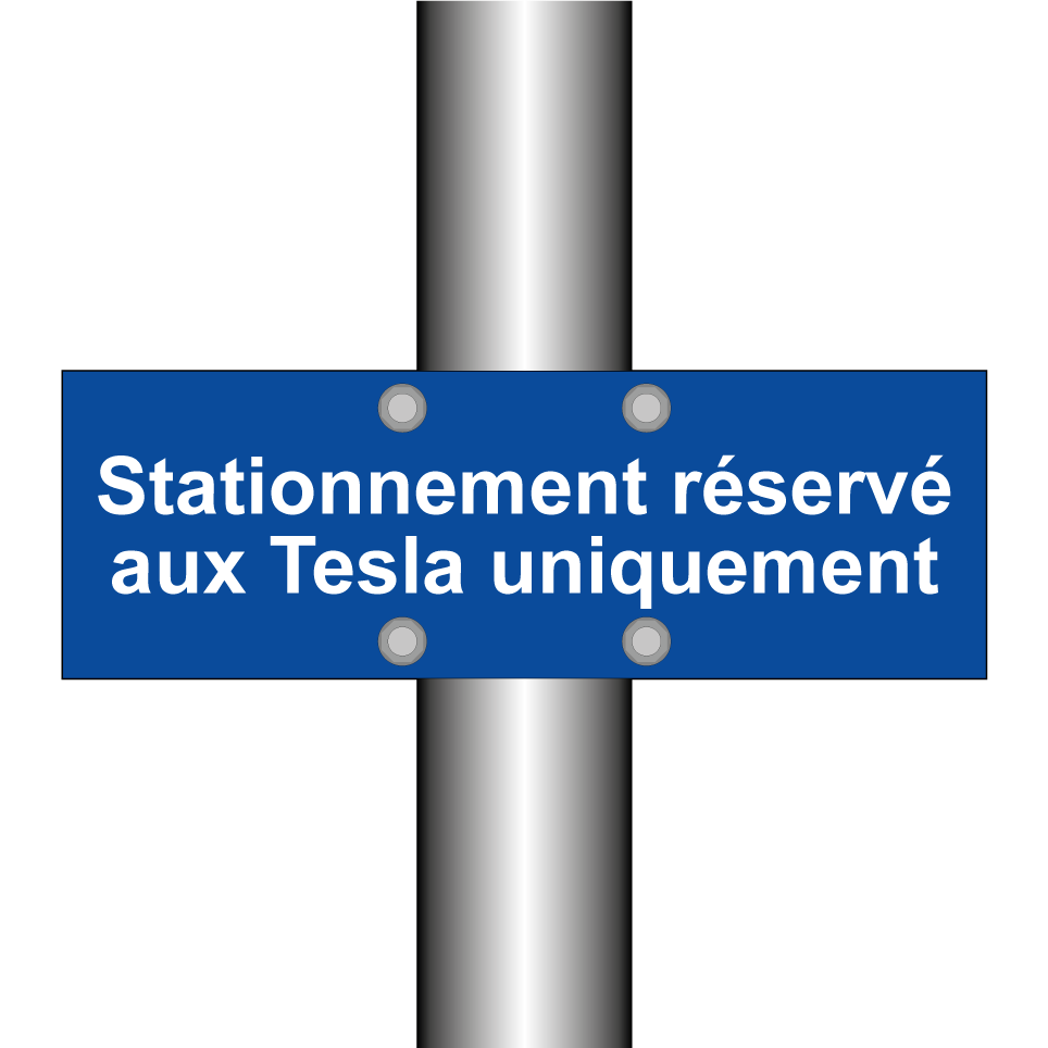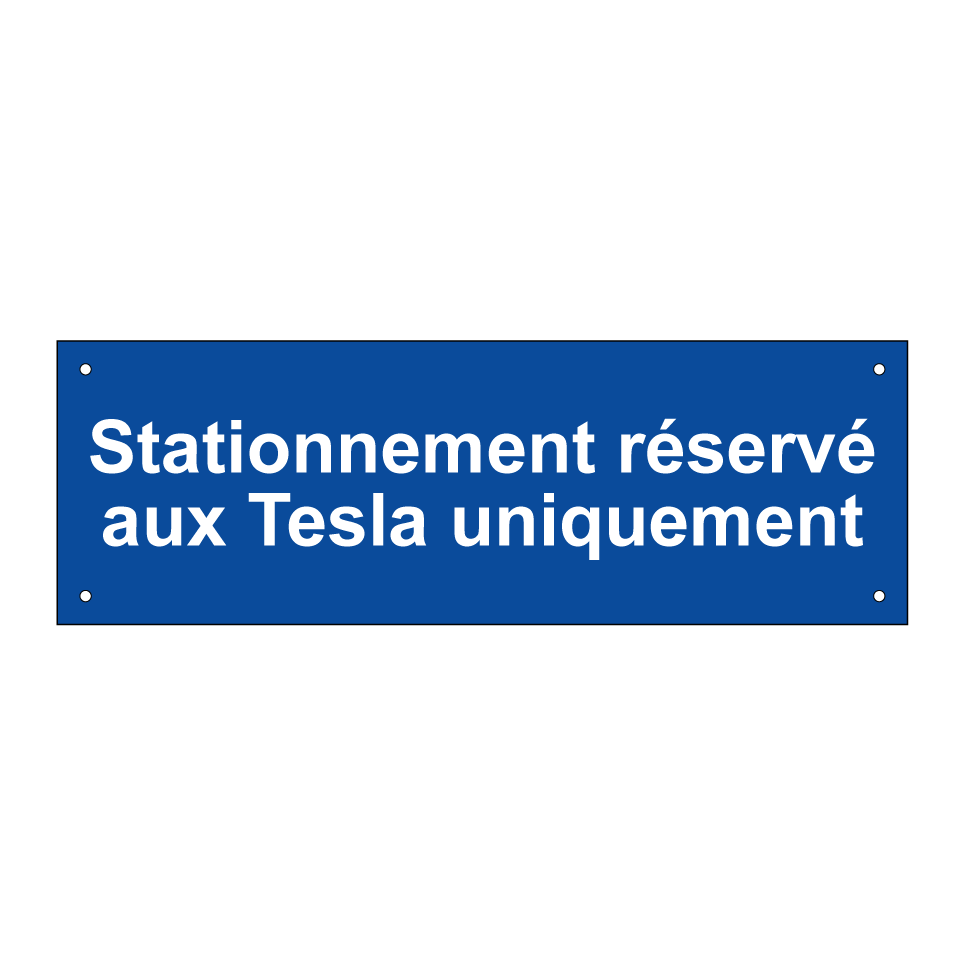 Panneau de stationnement avec le texte : "Stationnement réservé aux Tesla uniquement".