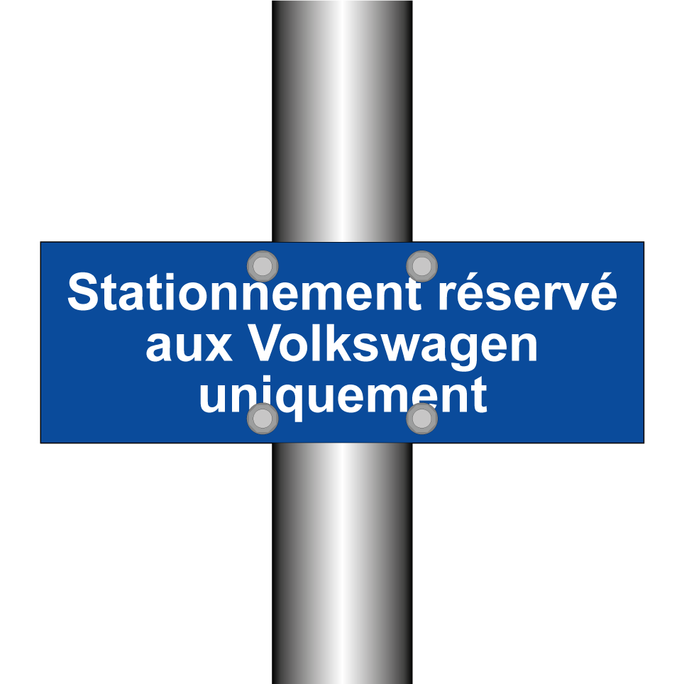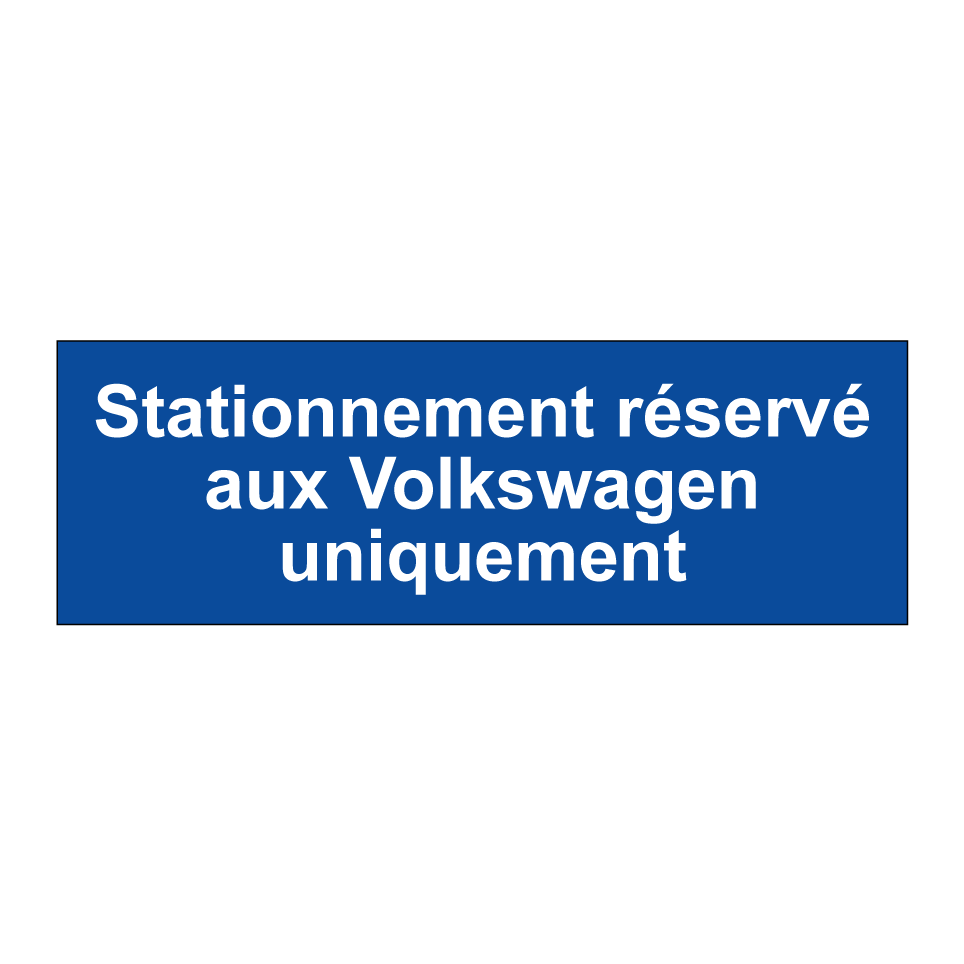 Panneau de stationnement avec le texte : "Stationnement réservé aux Volkswagen uniquement".