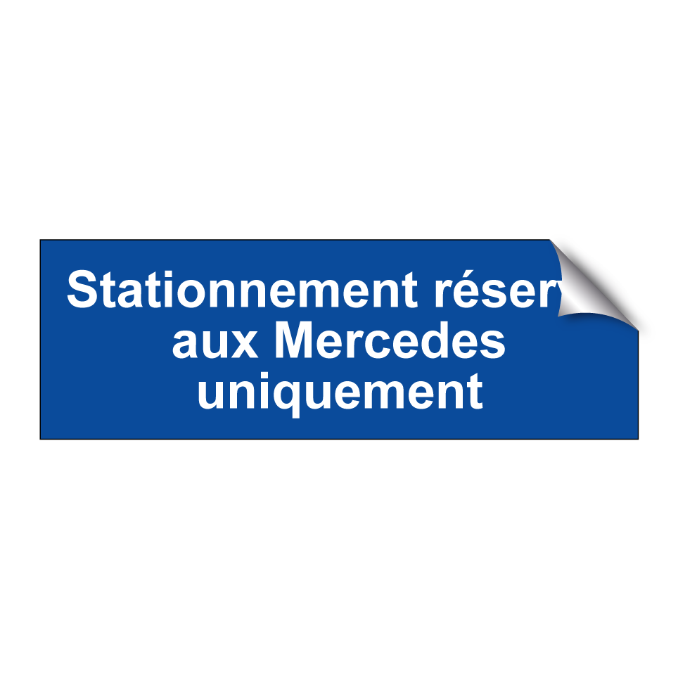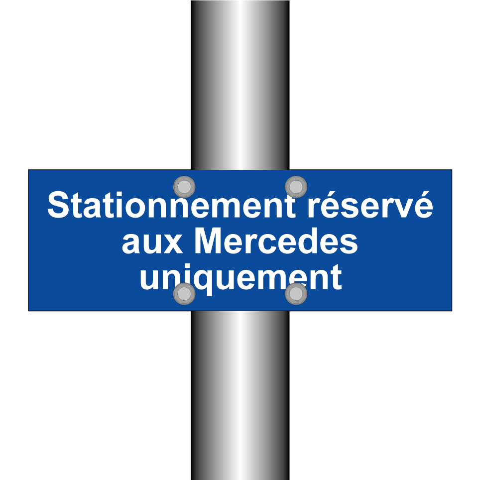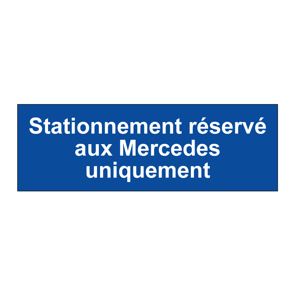 Panneau de stationnement avec le texte : "Stationnement réservé aux Mercedes uniquement".