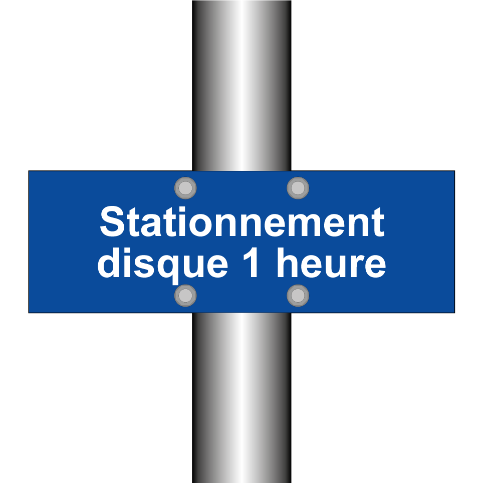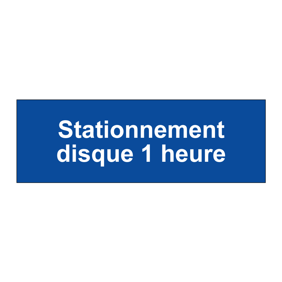 Panneau de stationnement avec le texte : "Stationnement disque 1 heure".