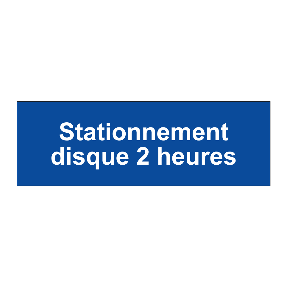 Panneau de stationnement avec le texte : "Stationnement disque 2 heures".