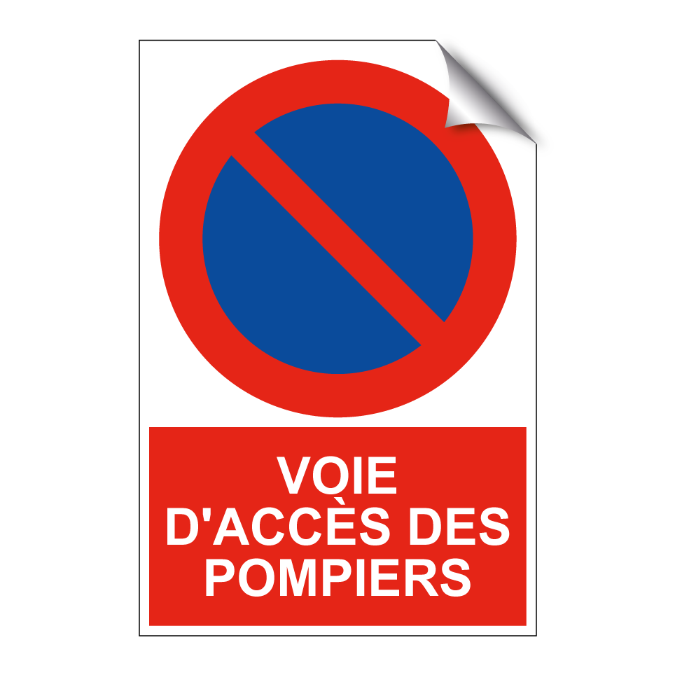 Panneau d'interdiction de stationner avec le texte : "Voie d'accès des pompiers" et une symbolique claire.