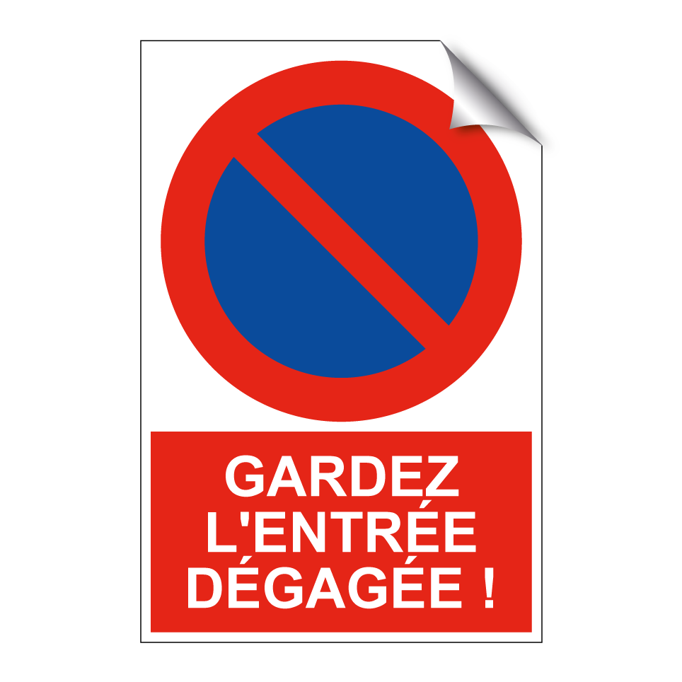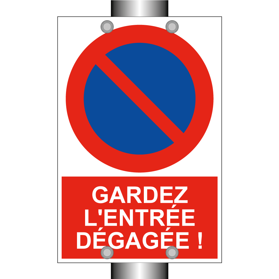 Panneau d'interdiction de stationner avec le texte : "Gardez l'entrée dégagée !" et une symbolique claire.
