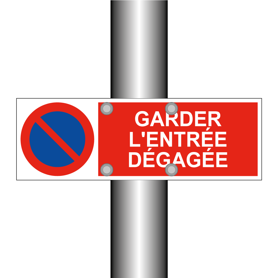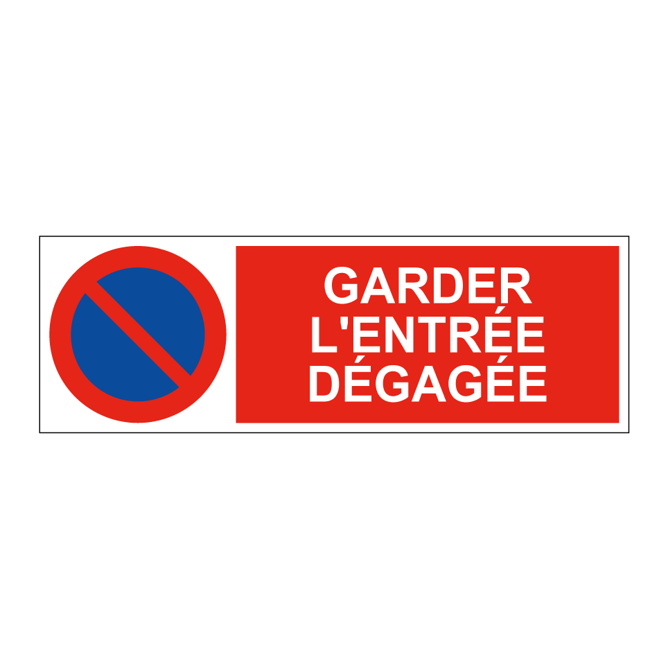 Panneau d'interdiction de stationner avec le texte : "Garder l'entrée dégagée" et une symbolique claire.
