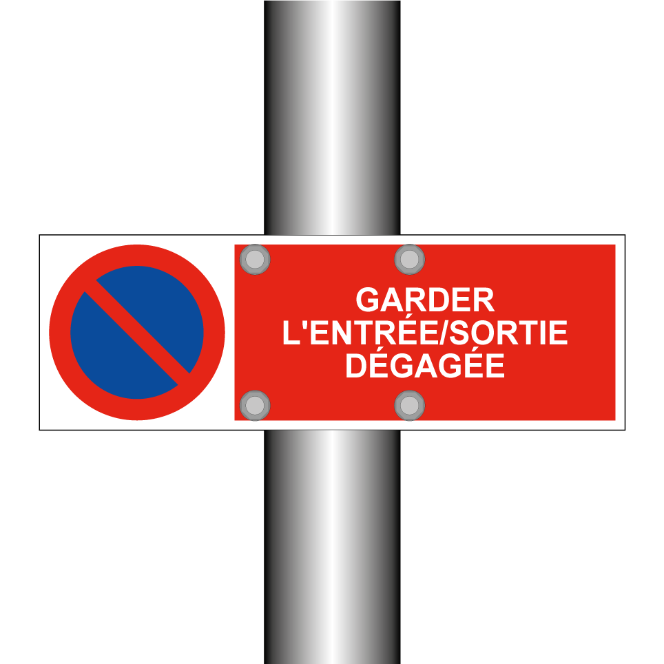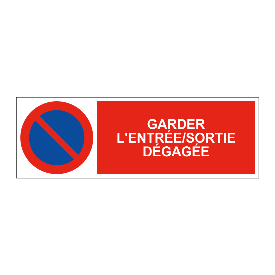 Panneau d'interdiction de stationner avec le texte : "Garder l'entrée/sortie dégagée" et une symbolique claire.