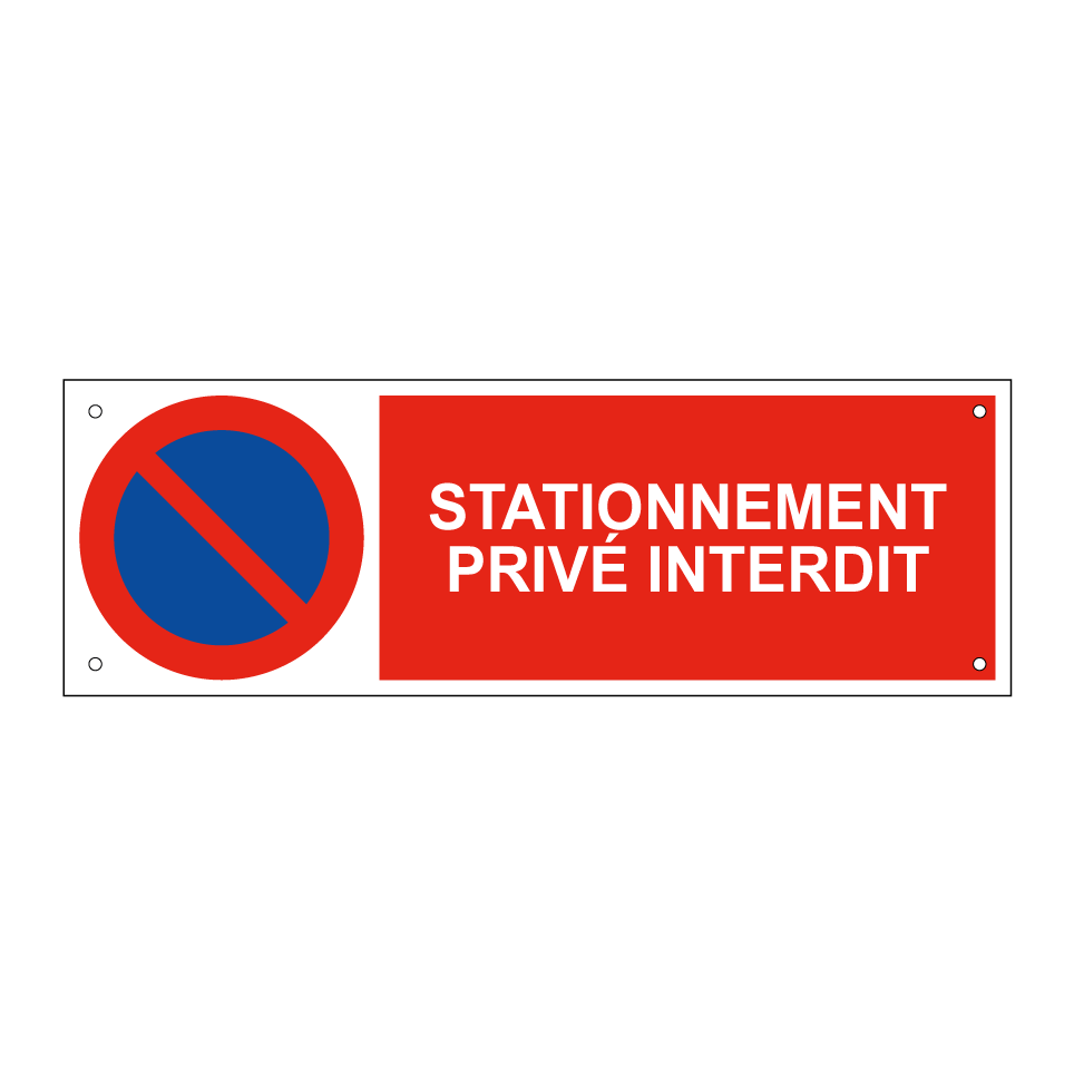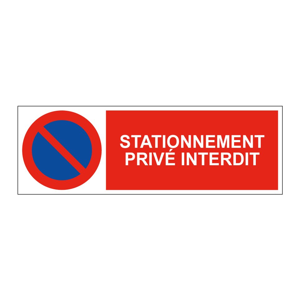 Panneau d'interdiction de stationner avec le texte : "Stationnement privé interdit" et une symbolique claire.