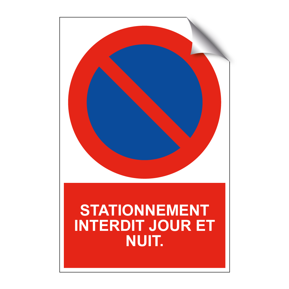 Ce panneau de signalisation interdit le stationnement à tout moment, de jour comme de nuit. Idéal pour les zones où le stationnement doit être strictement contrôlé, comme les entrées de garage, les zones de chargement ou les rues étroites. Sa couleur rouge vive et son texte blanc assurent une visibilité maximale, garantissant que le message est clair et respecté. Placez-le à l'entrée de votre propriété ou dans des zones à circulation dense pour éviter les infractions.