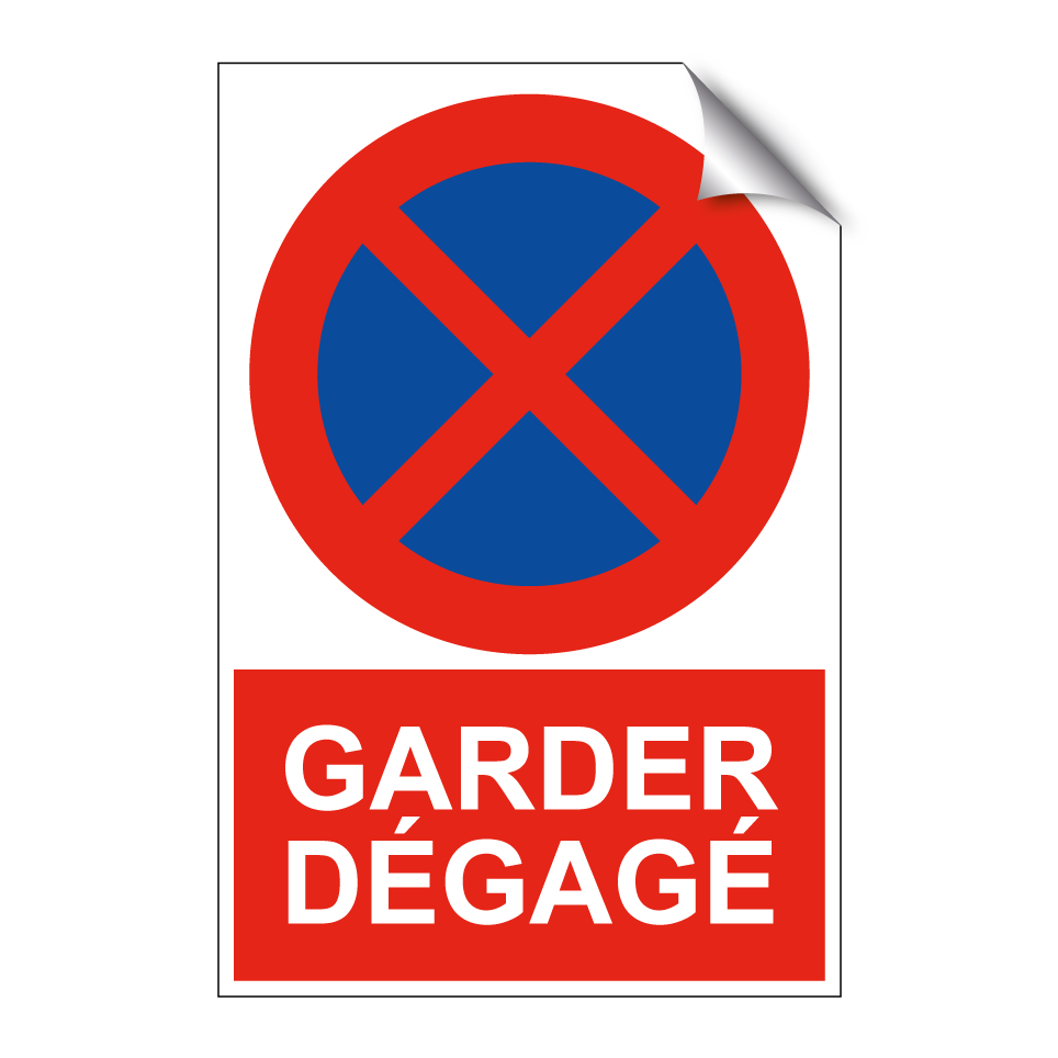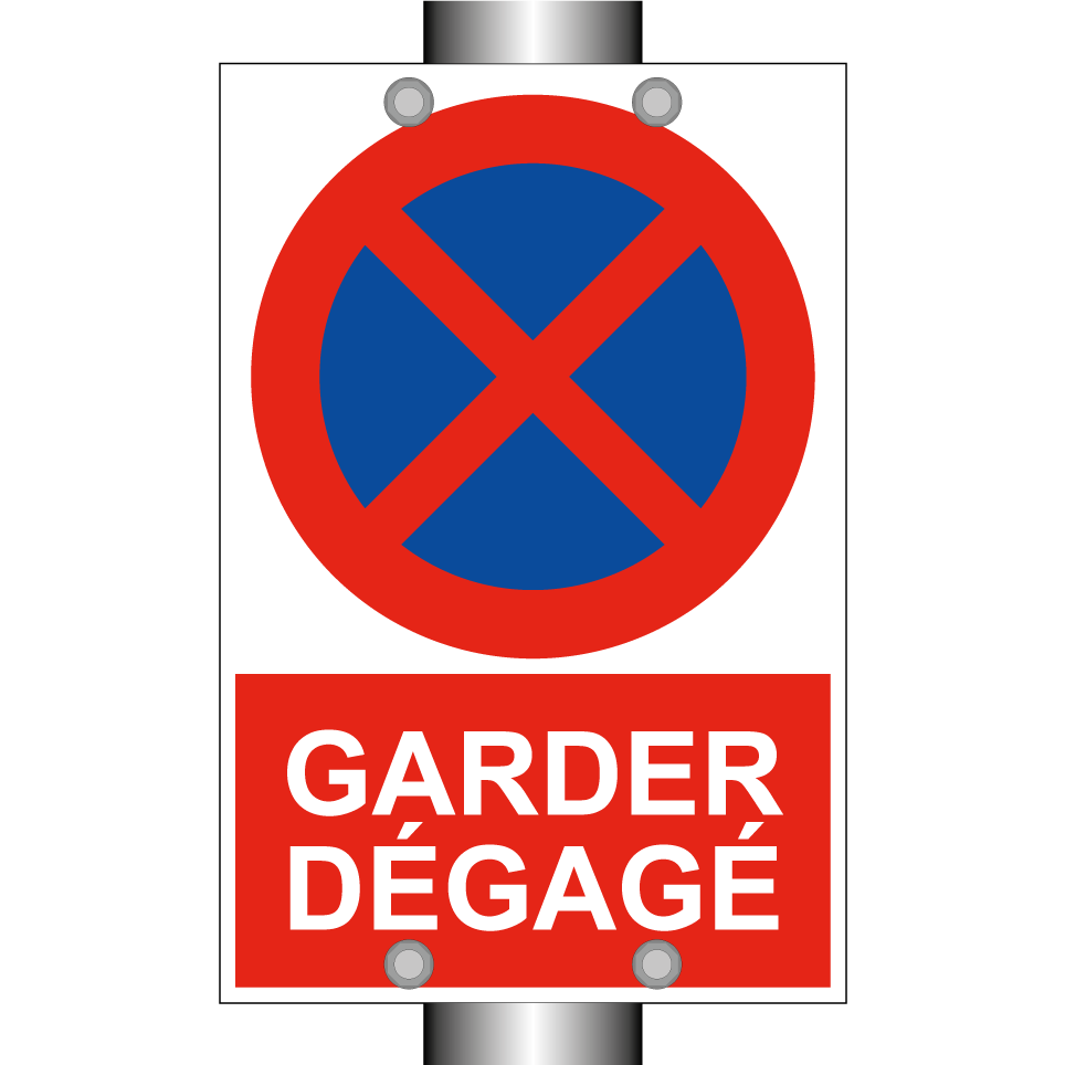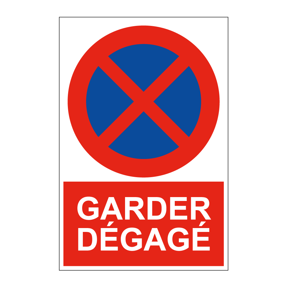 Panneau d'interdiction de stationner avec le texte : "Garder dégagé" et une symbolique claire.
