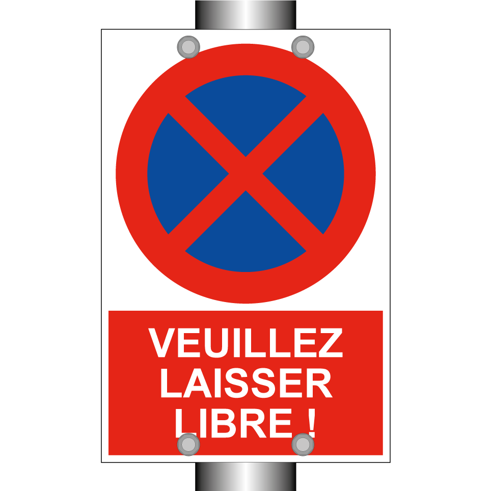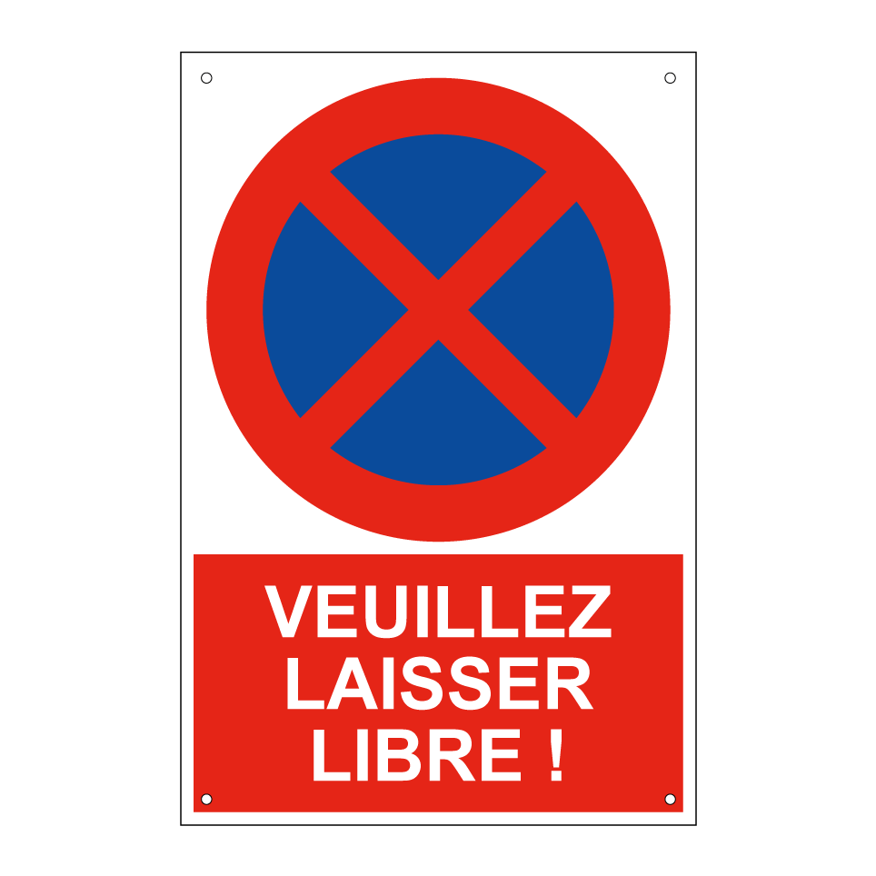 Panneau d'interdiction de stationner avec le texte : "Veuillez laisser libre !" et une symbolique claire.