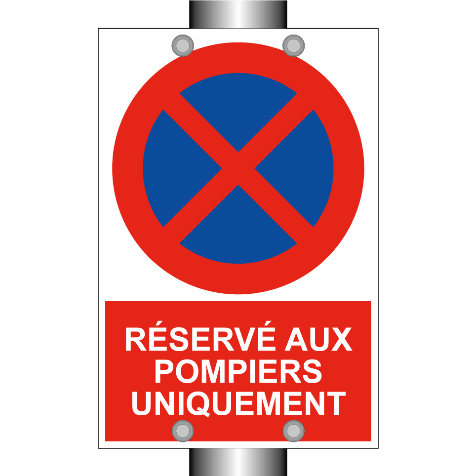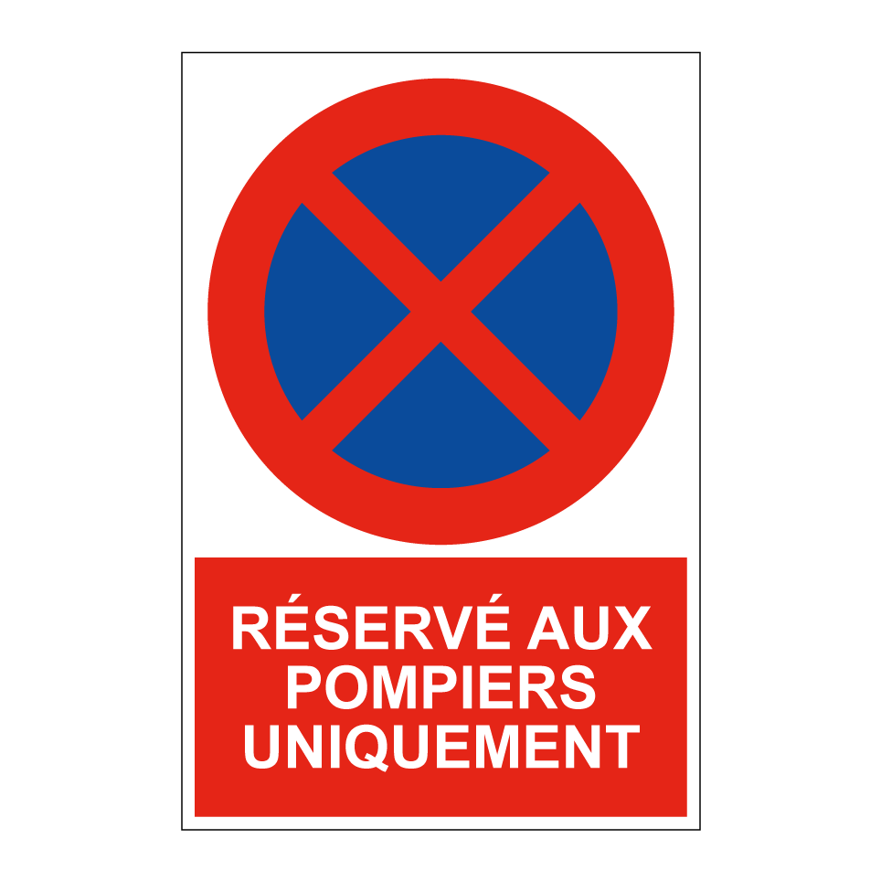Panneau d'interdiction de stationner avec le texte : "Réservé aux pompiers uniquement" et une symbolique claire.