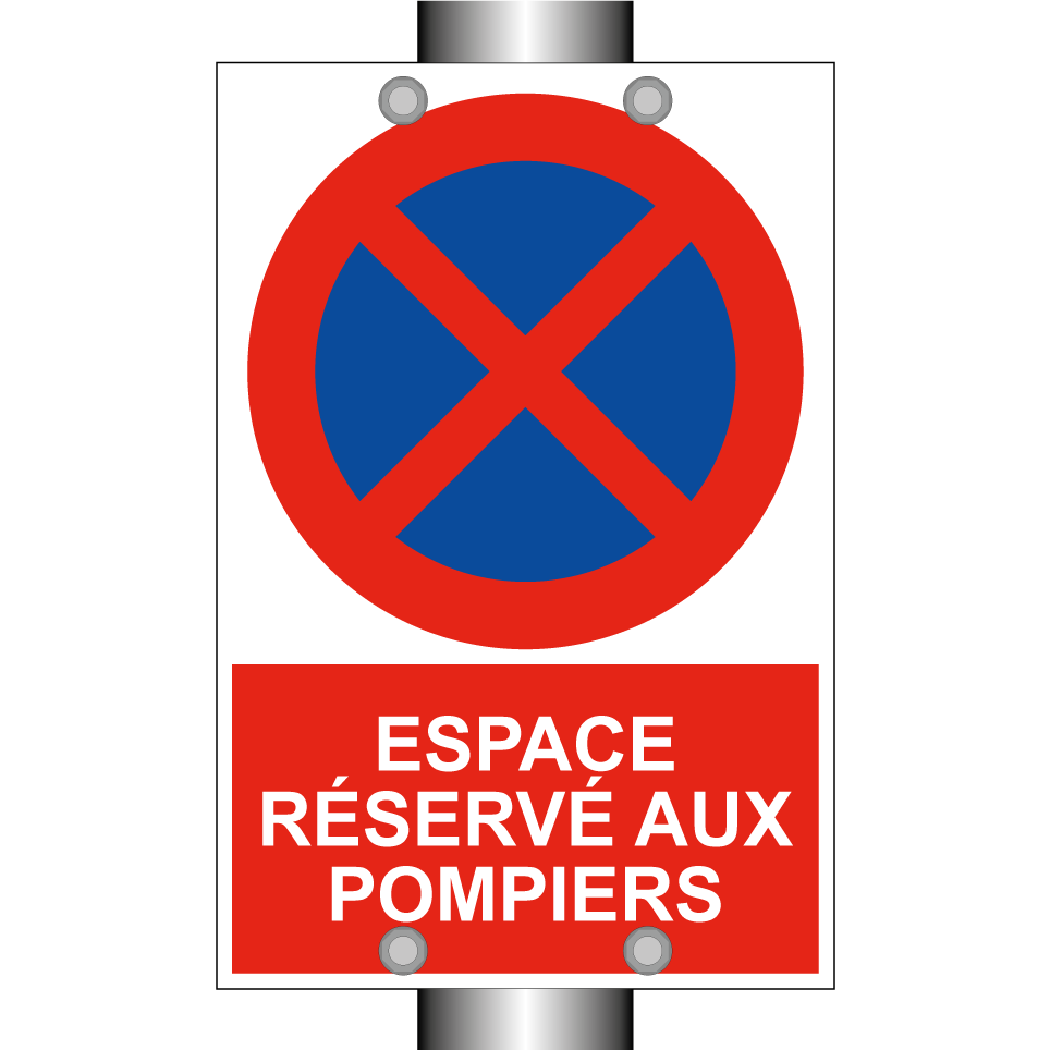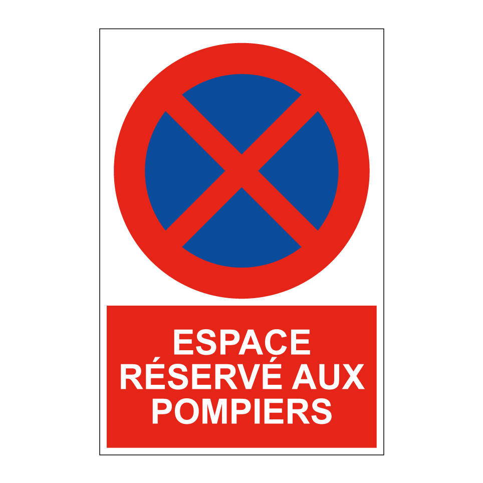 Panneau d'interdiction de stationner avec le texte : "Espace réservé aux pompiers" et une symbolique claire.