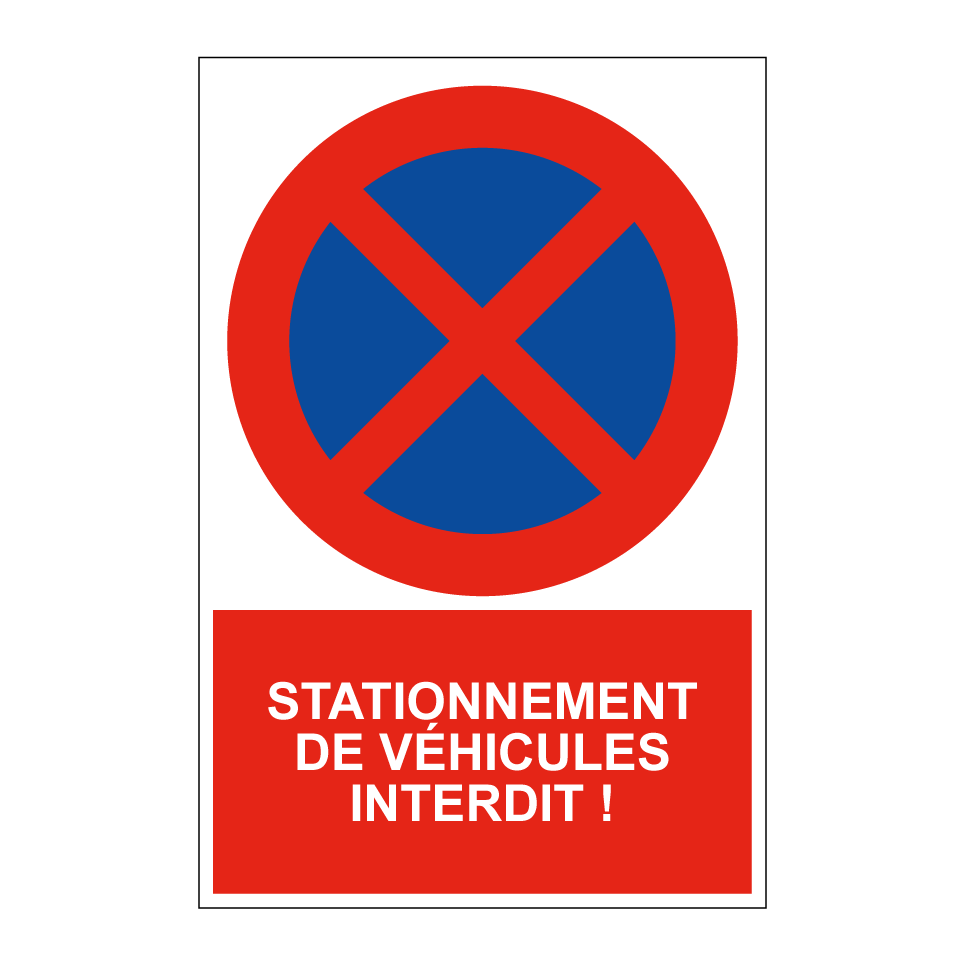 Panneau d'interdiction de stationner avec le texte : "Stationnement de véhicules interdit !" et une symbolique claire.
