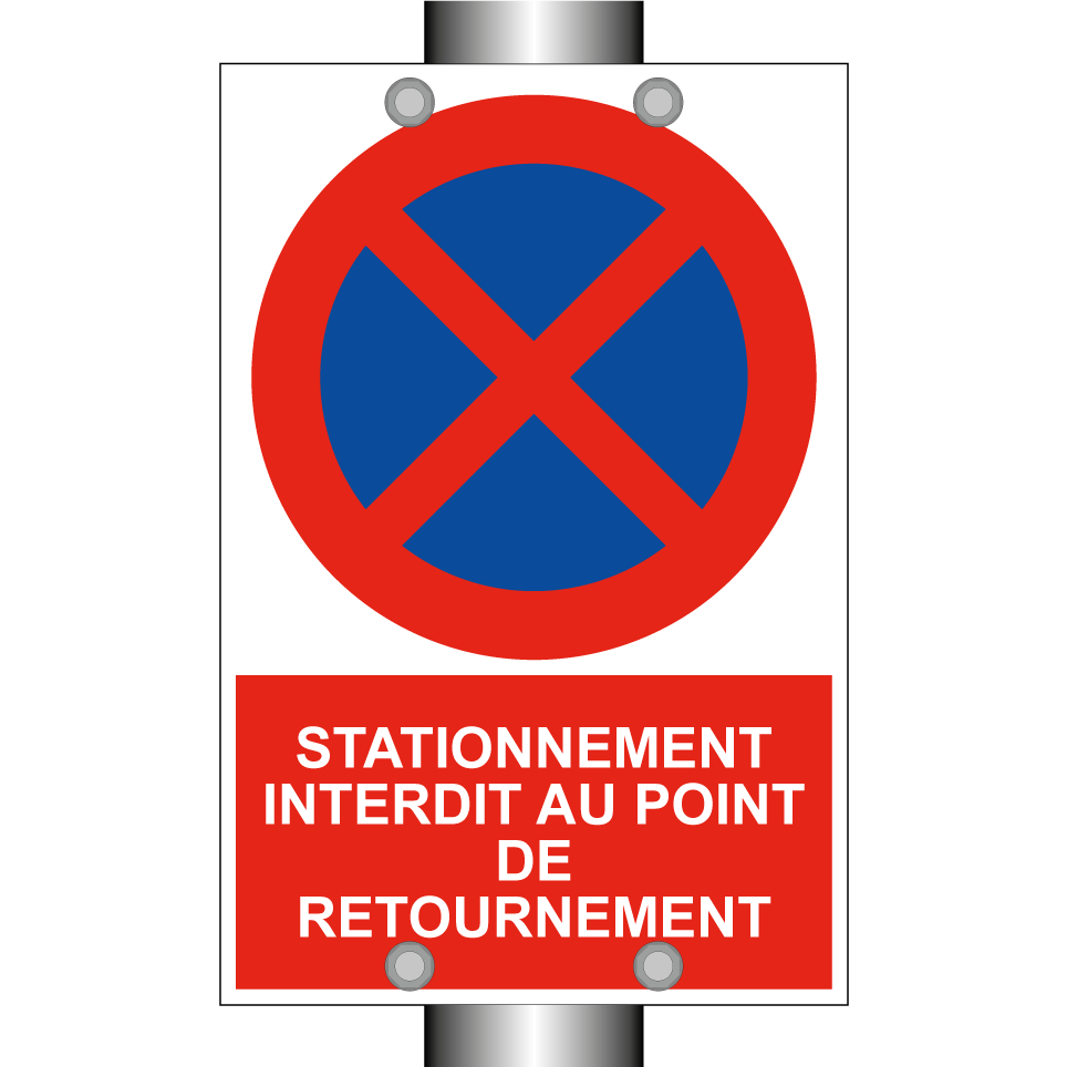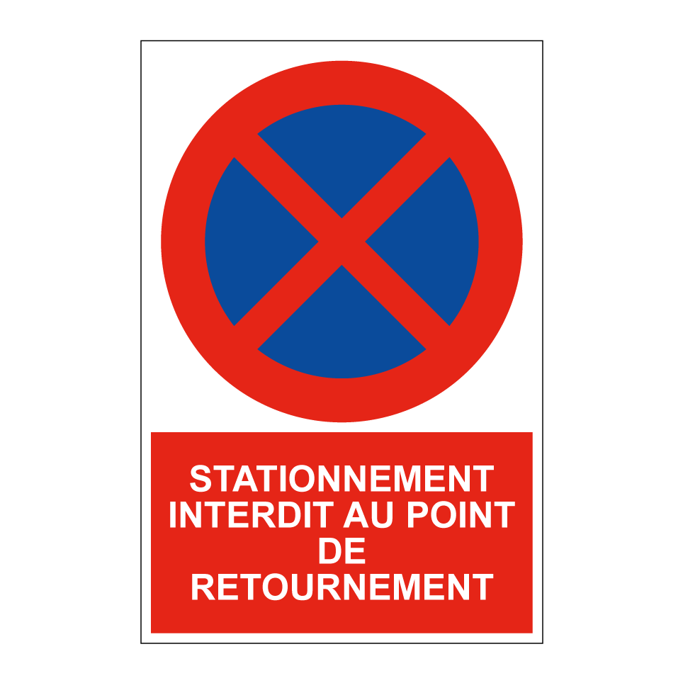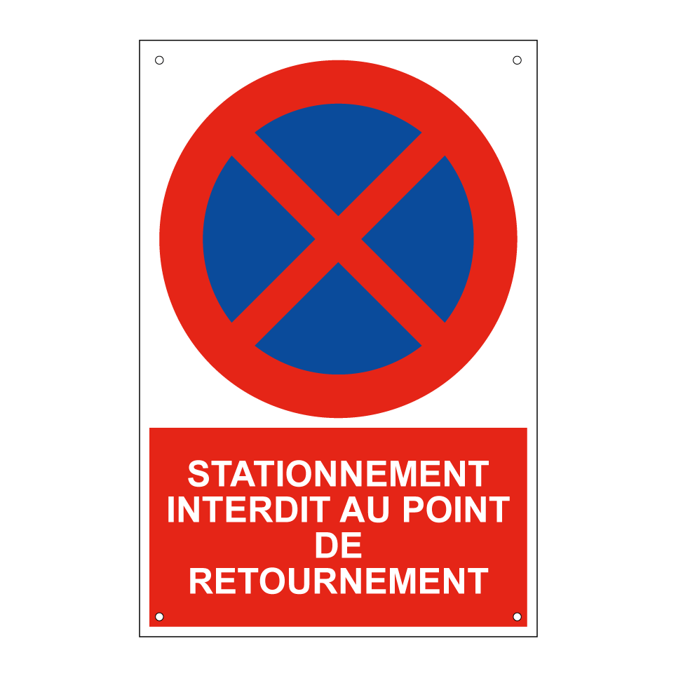 Panneau d'interdiction de stationner avec le texte : "Stationnement interdit au point de retournement" et une symbolique claire.