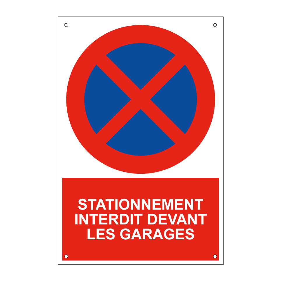 Ce panneau de signalisation interdit le stationnement devant les garages, garantissant un accès libre et sécurisé. Idéal pour les zones résidentielles, les immeubles d'appartements et les entreprises, il prévient les blocages indésirables et assure la fluidité du trafic. Placez-le à l'entrée des allées, des parkings privés ou des zones de chargement pour une visibilité optimale. Ce panneau est essentiel pour maintenir l'ordre et éviter les désagréments liés au stationnement non autorisé.