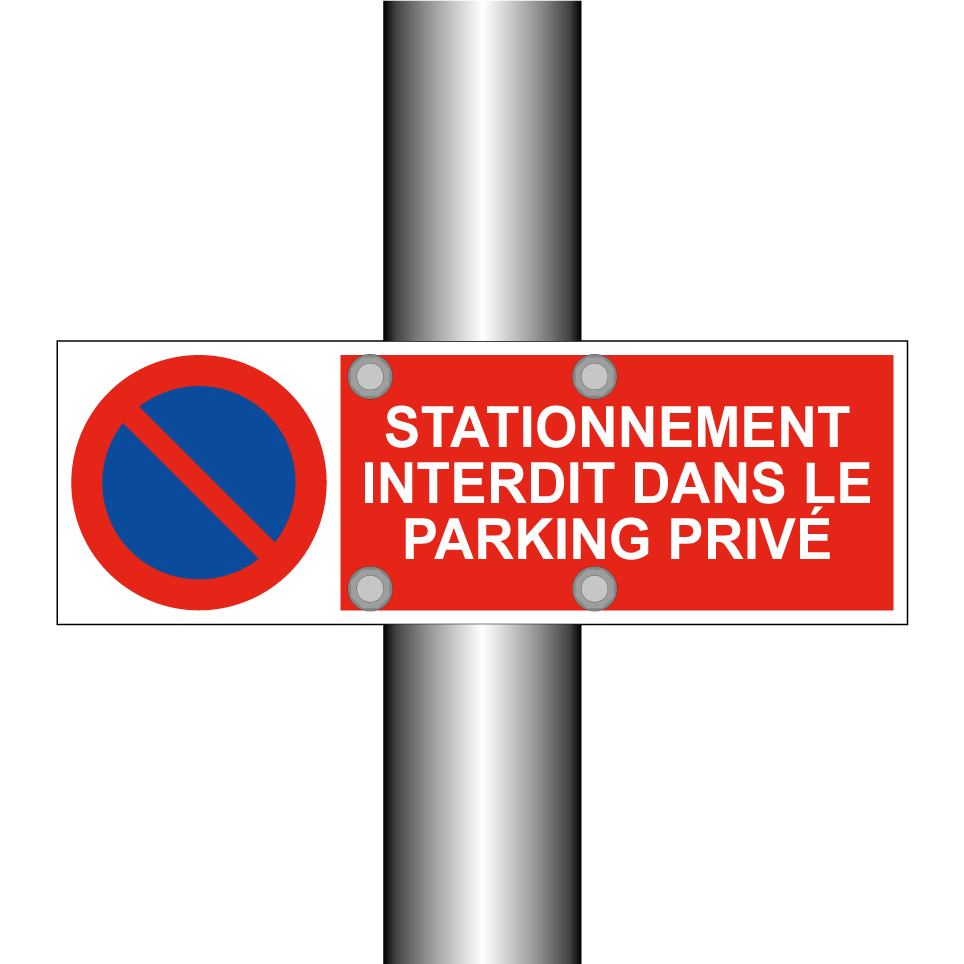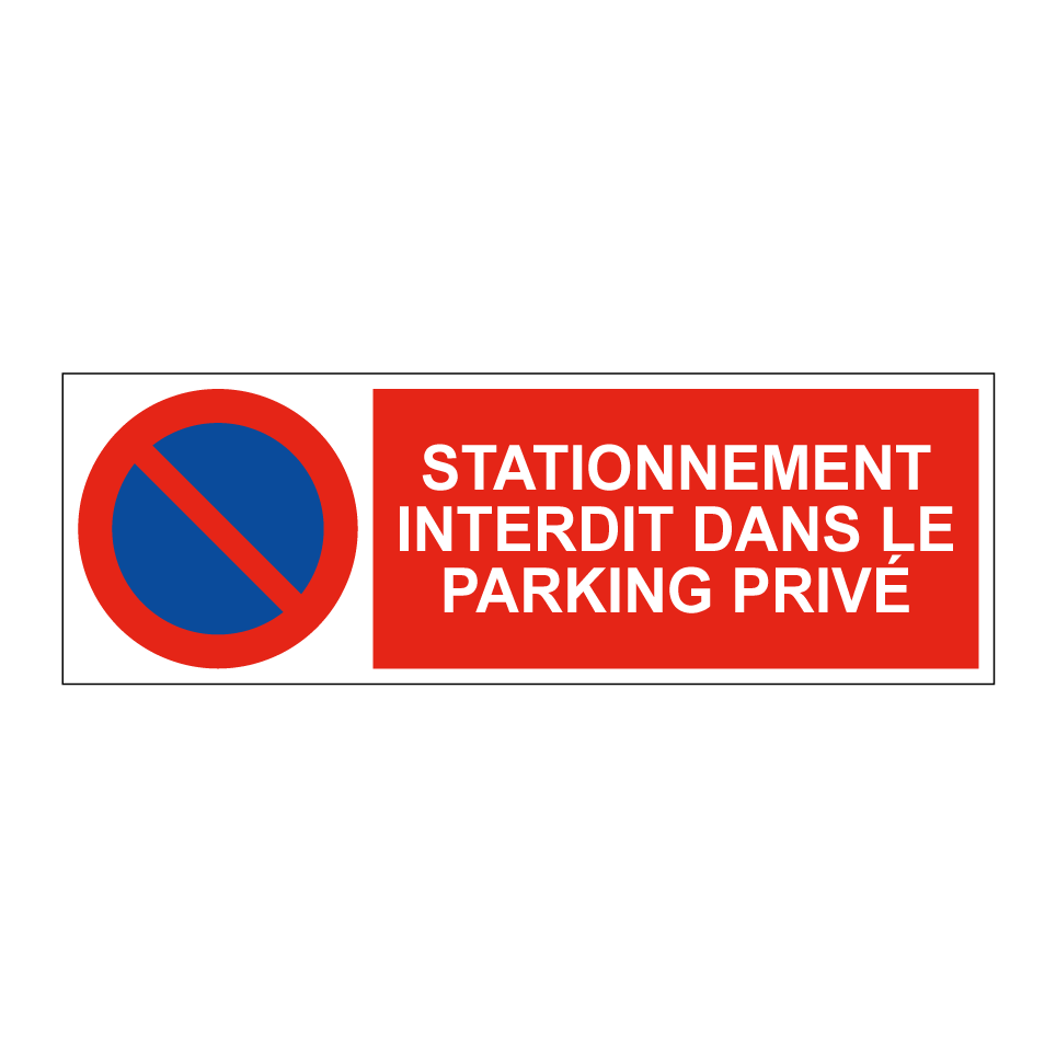 Panneau d'interdiction de stationner avec le texte : "Stationnement interdit dans le parking privé" et une symbolique claire.