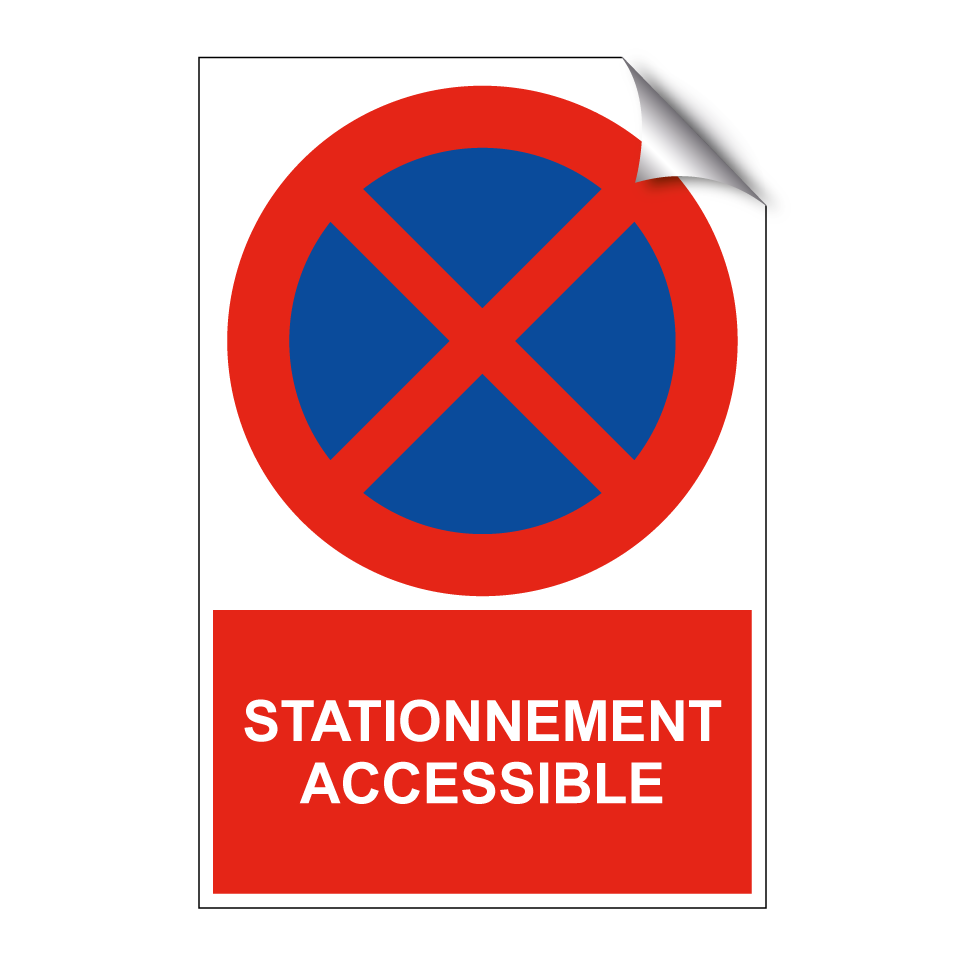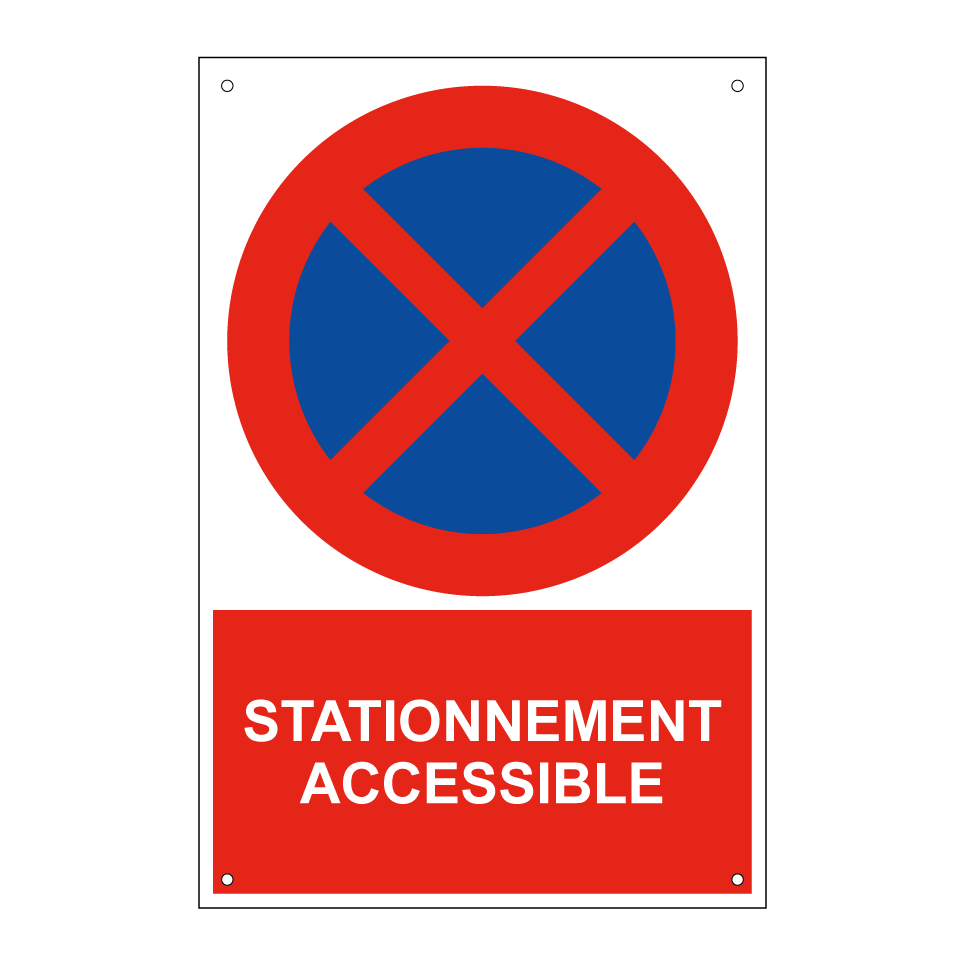Panneau d'interdiction de stationner avec le texte : "Stationnement accessible" et une symbolique claire.