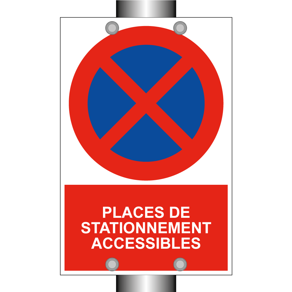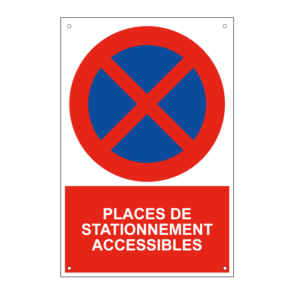 Panneau d'interdiction de stationner avec le texte : "Places de stationnement accessibles" et une symbolique claire.