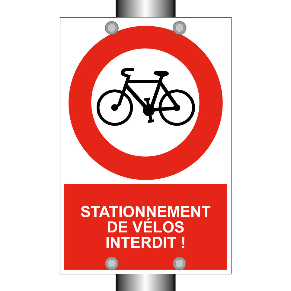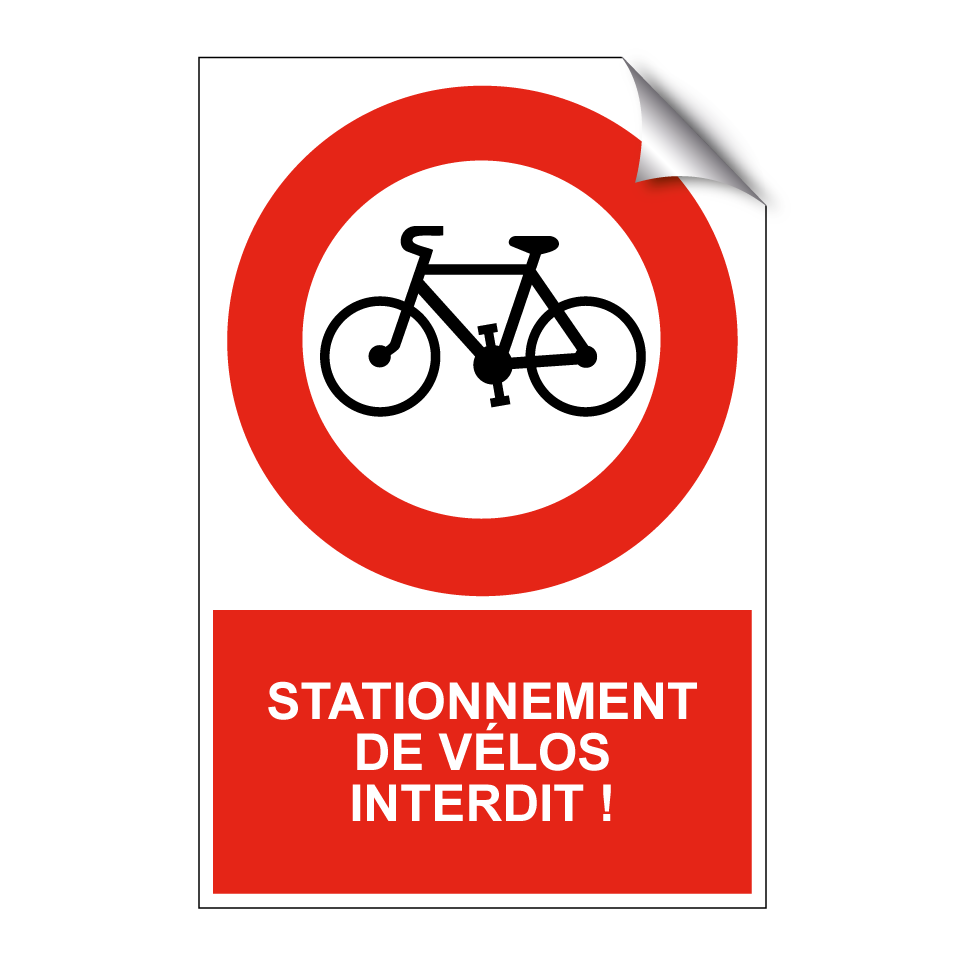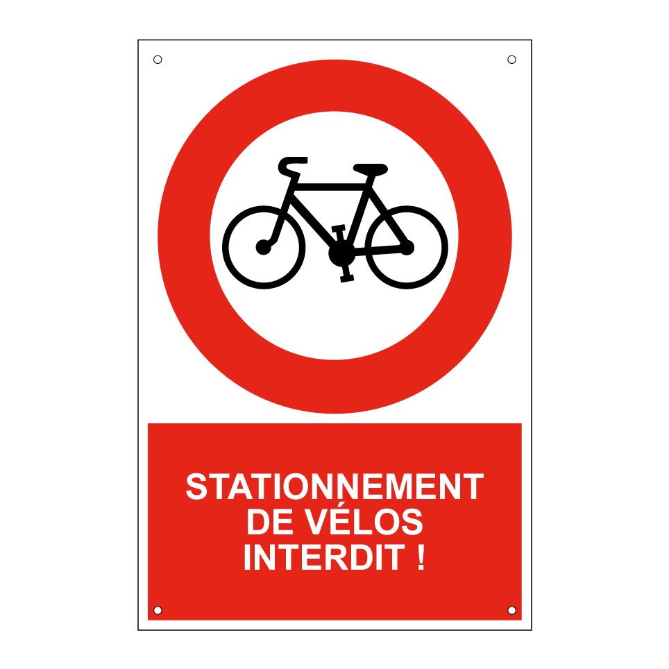Panneau d'interdiction de stationner avec le texte : "Stationnement de vélos interdit !" et une symbolique claire.