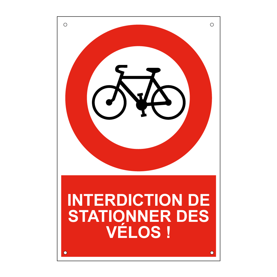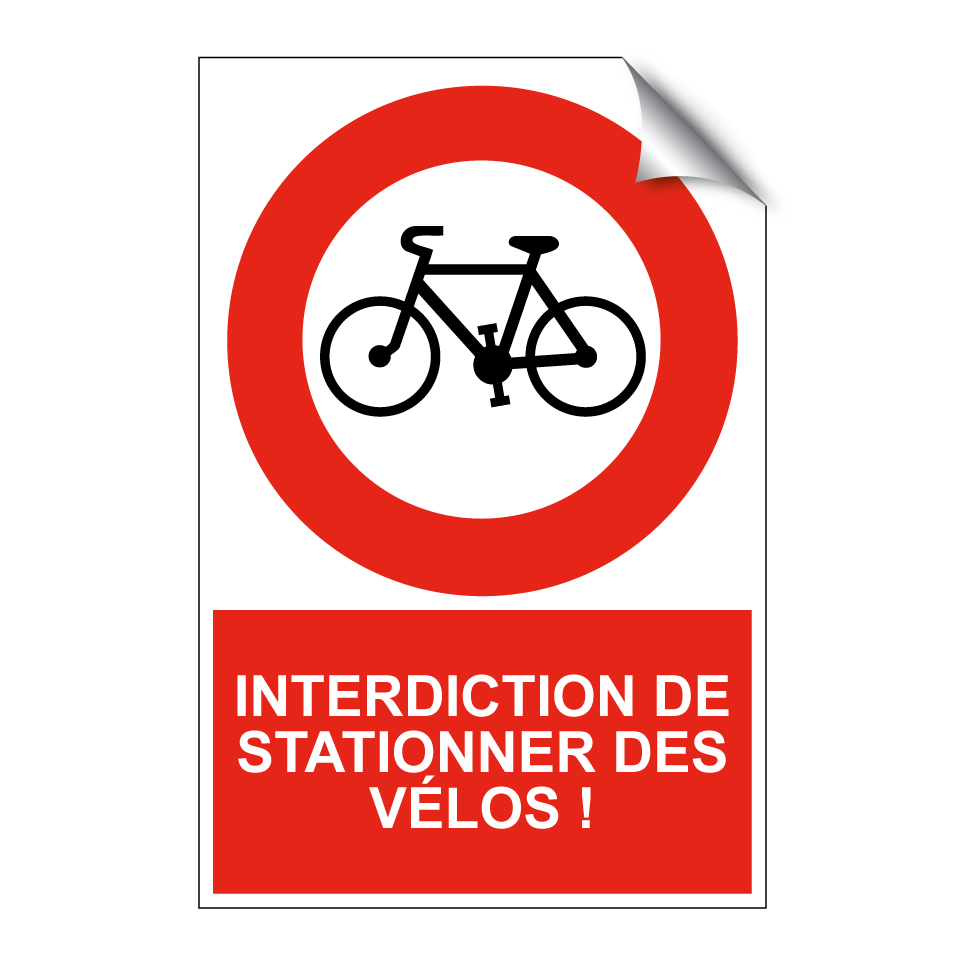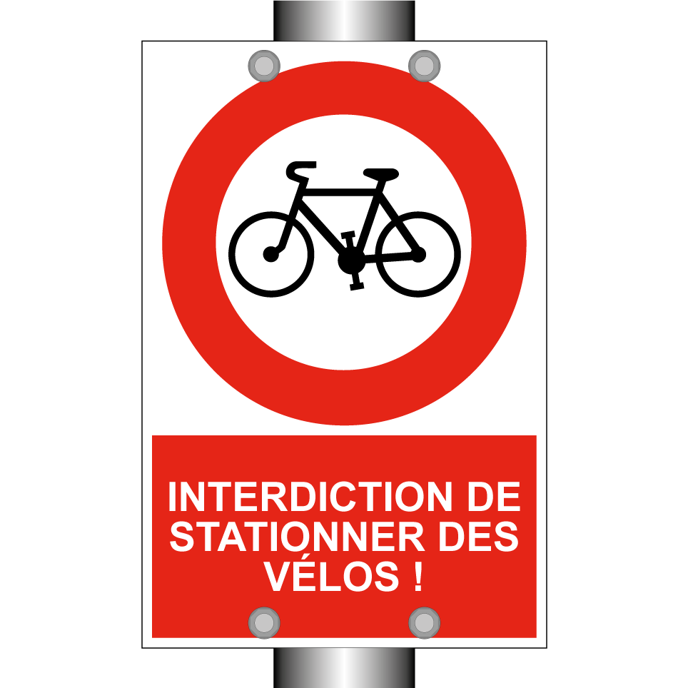 Panneau d'interdiction de stationner avec le texte : "Interdiction de stationner des vélos !" et une symbolique claire.