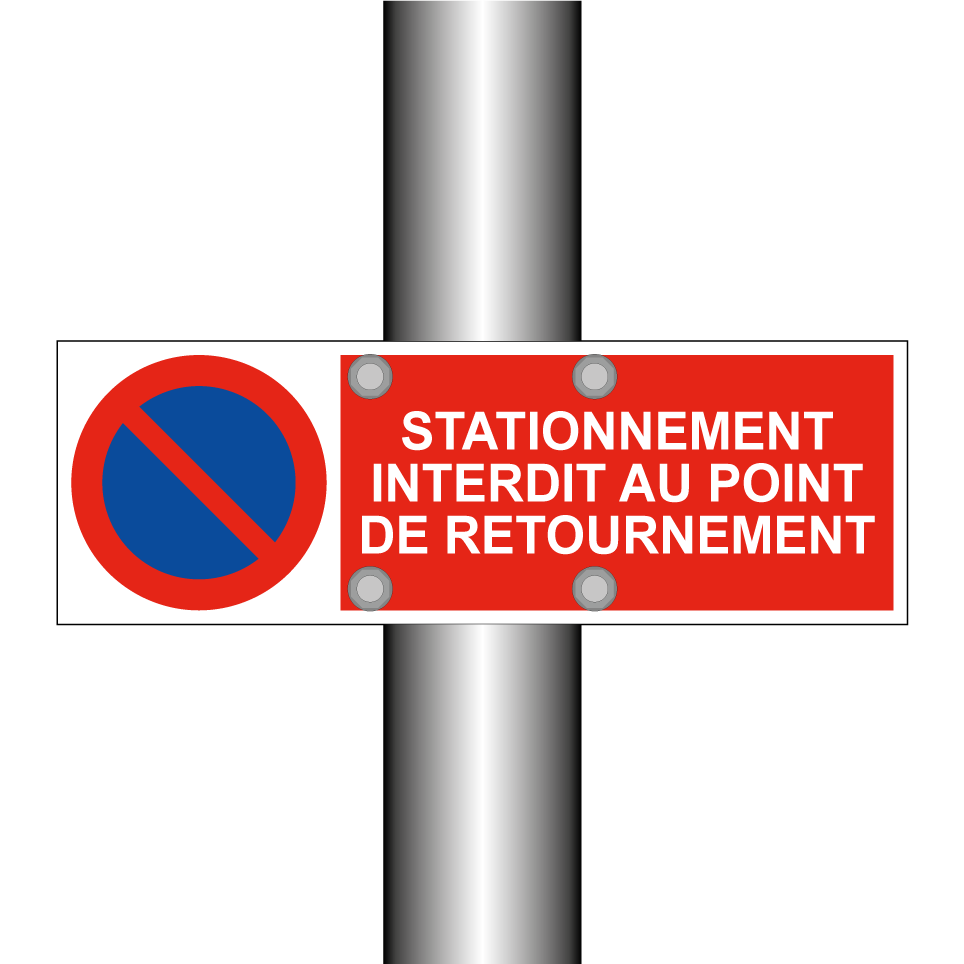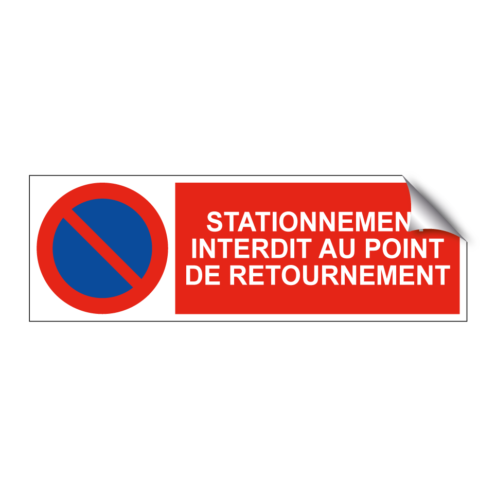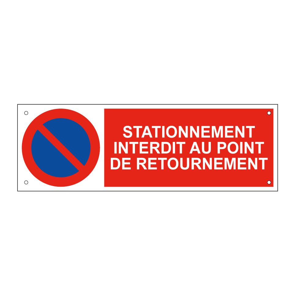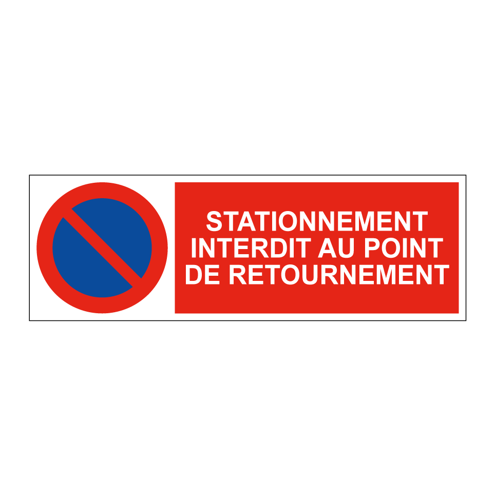 Panneau d'interdiction de stationner avec le texte : "Stationnement interdit au point de retournement" et une symbolique claire.