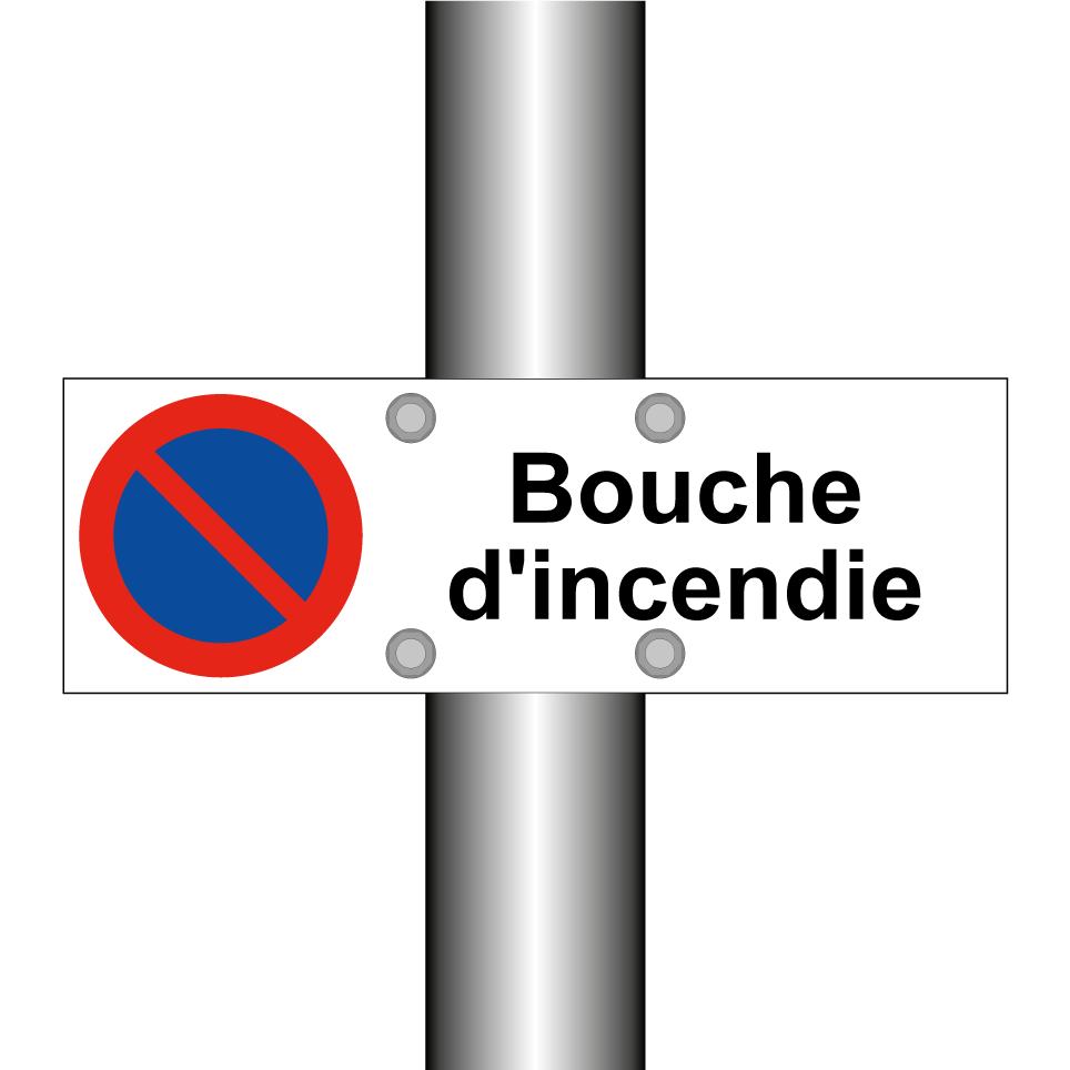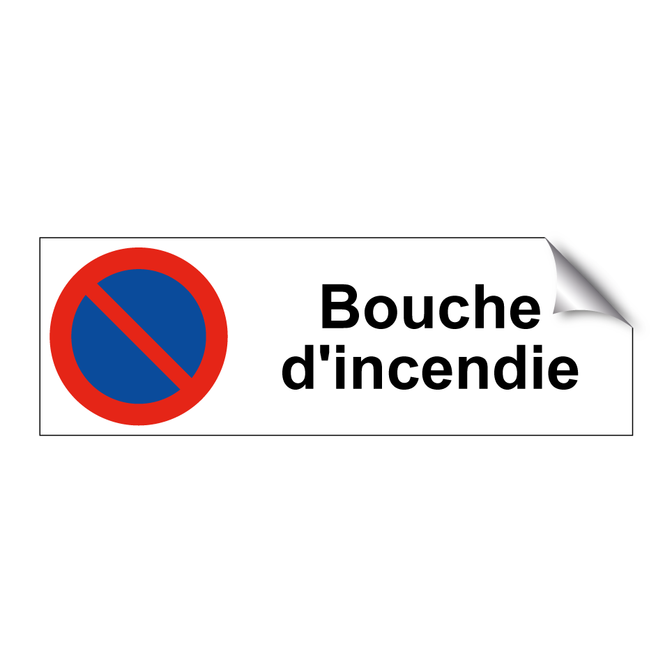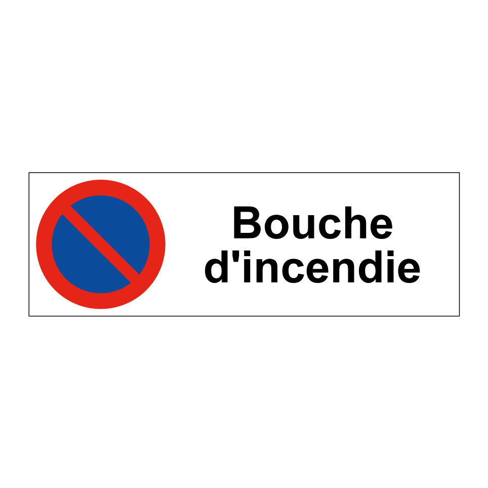 Panneau d'interdiction de stationner avec le texte : "Bouche d'incendie" et une symbolique claire.