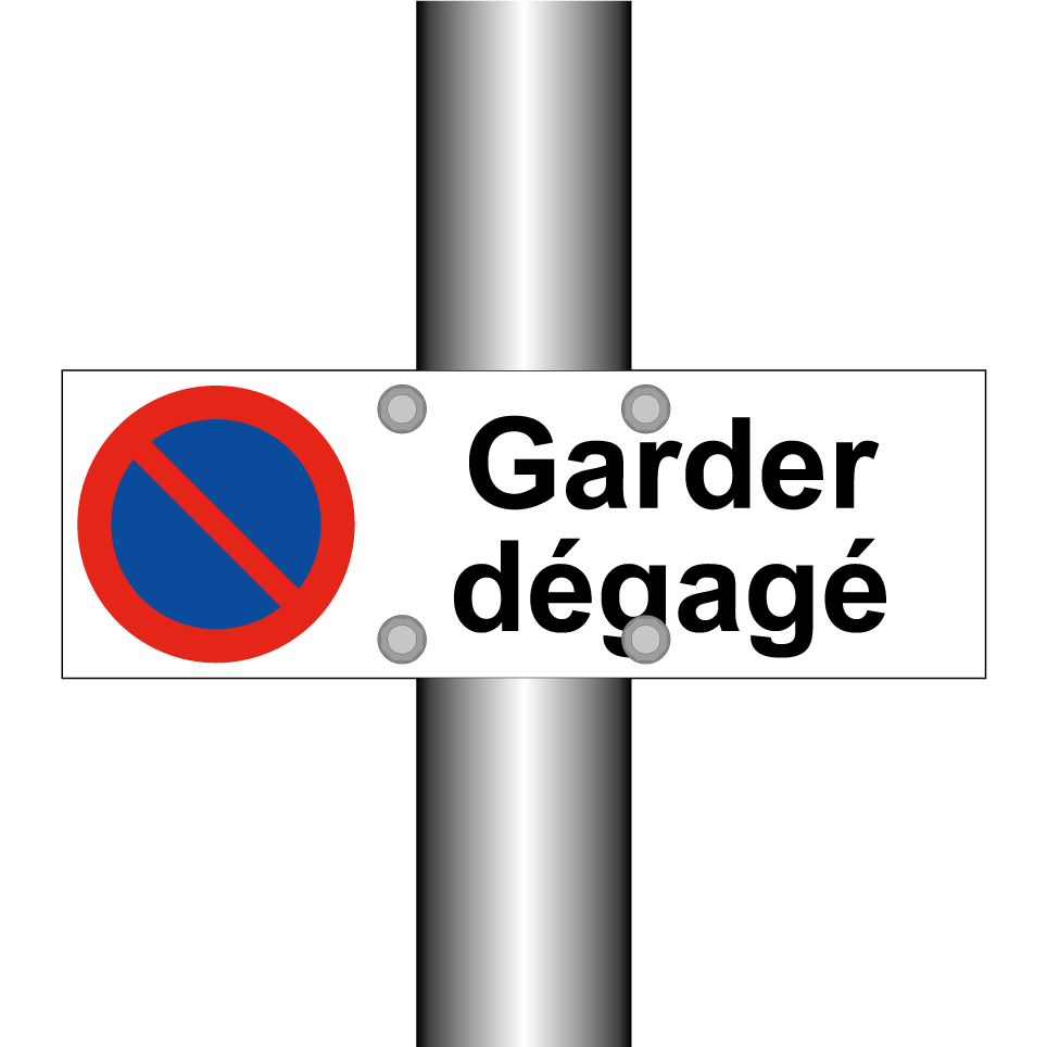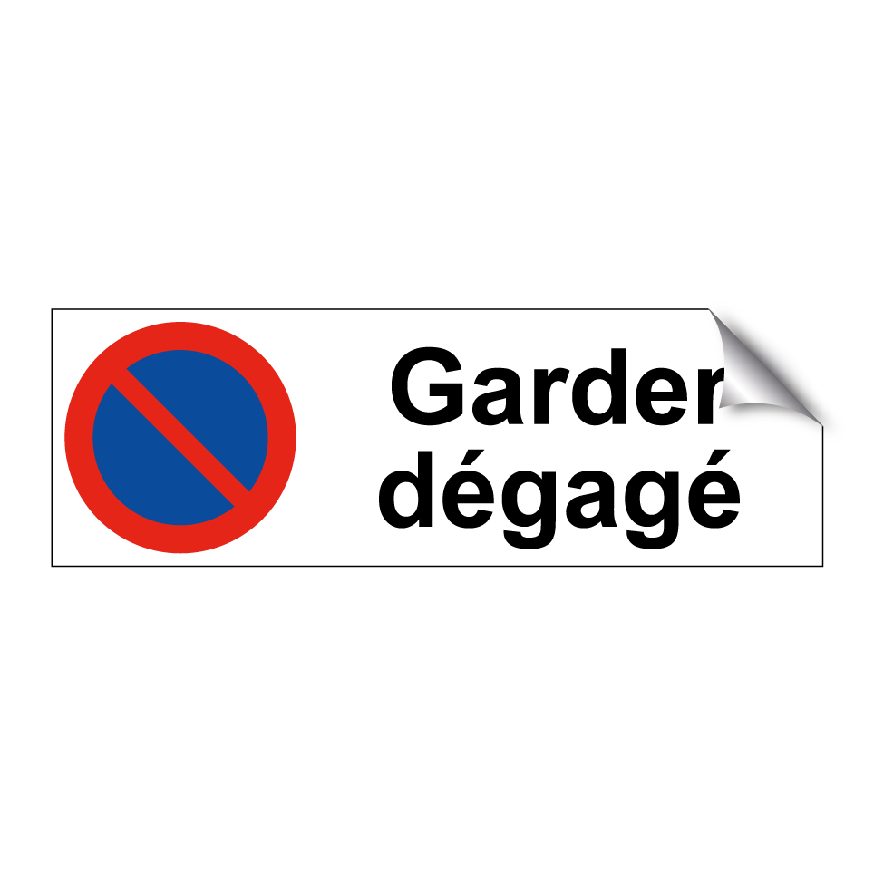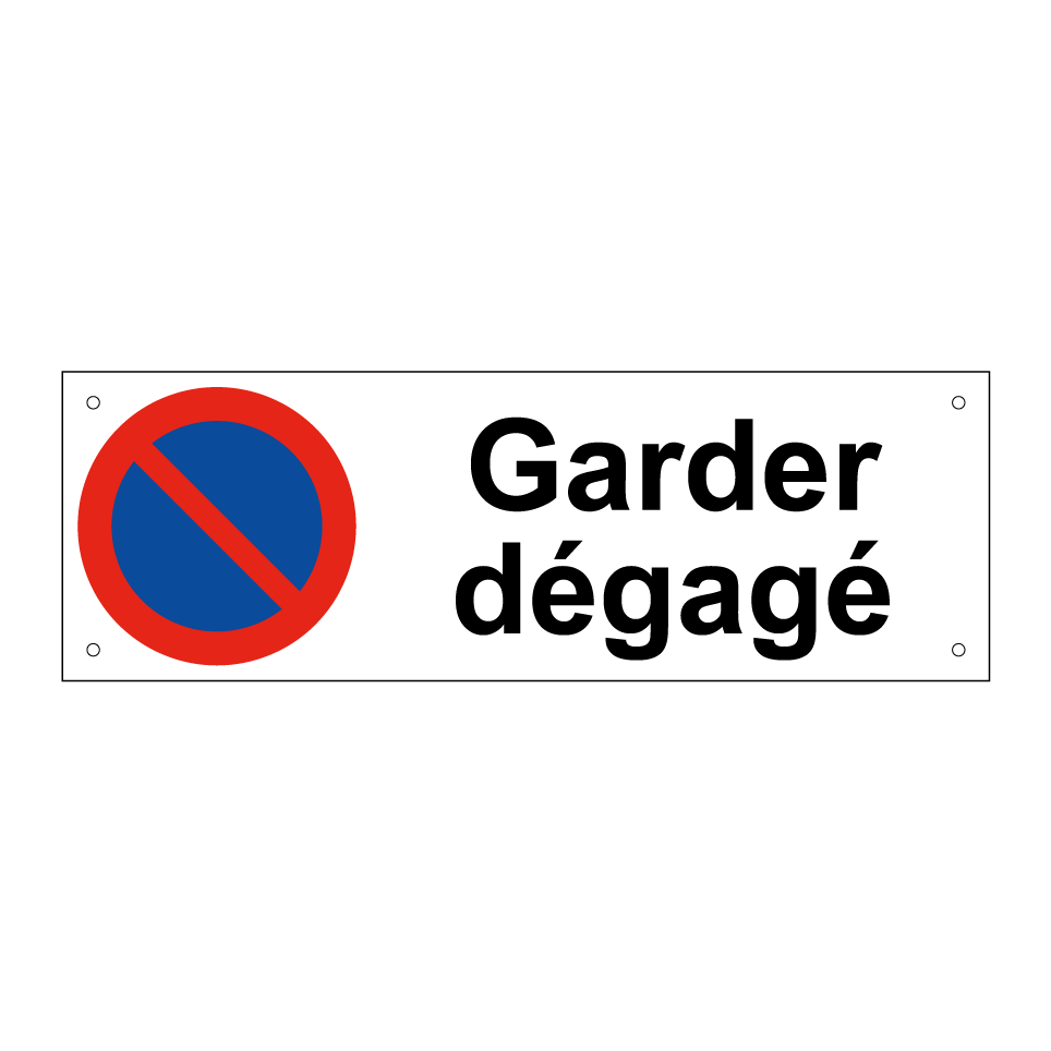 Panneau d'interdiction de stationner avec le texte : "Garder dégagé" et une symbolique claire.