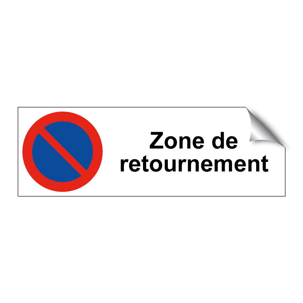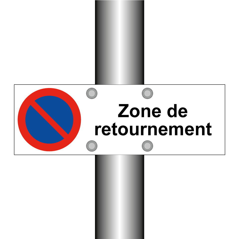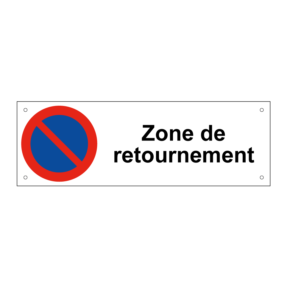 Panneau d'interdiction de stationner avec le texte : "Zone de retournement" et une symbolique claire.