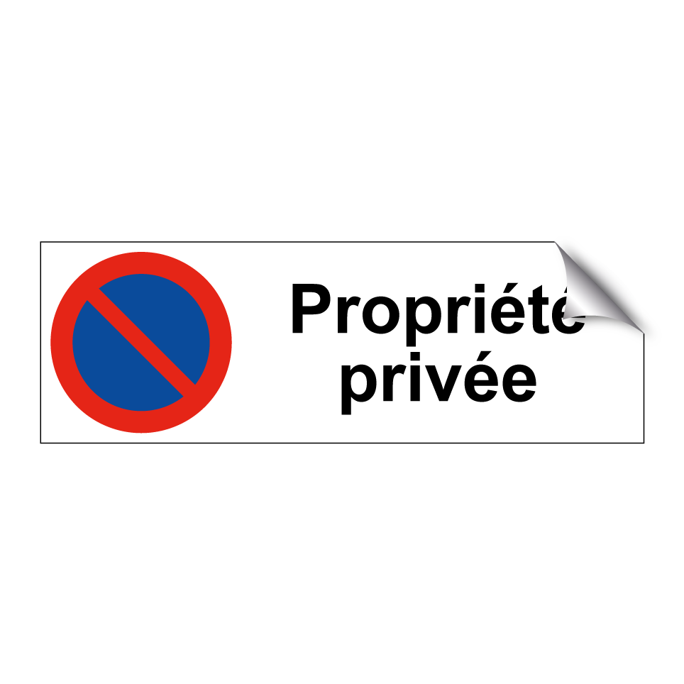 Panneau d'interdiction de stationner avec le texte : "Propriété privée" et une symbolique claire.