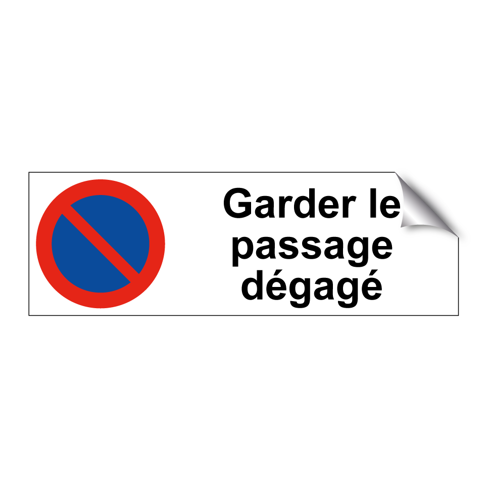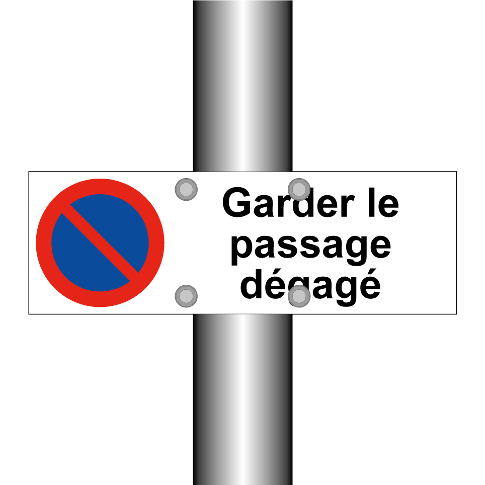 Panneau d'interdiction de stationner avec le texte : "Garder le passage dégagé" et une symbolique claire.