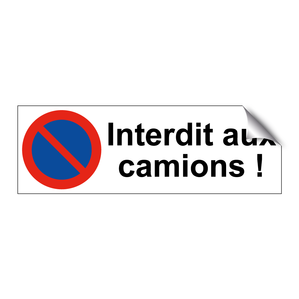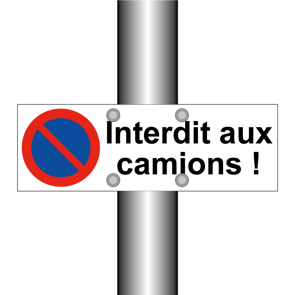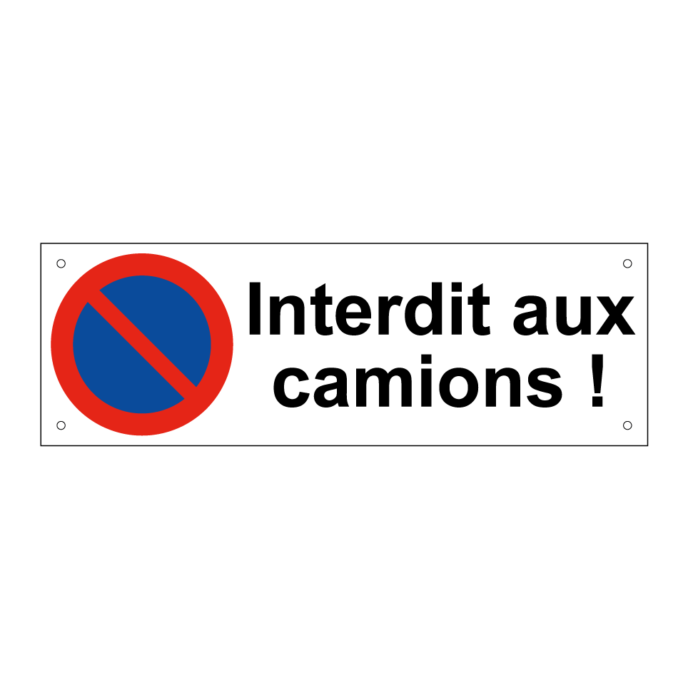 Panneau d'interdiction de stationner avec le texte : "Interdit aux camions !" et une symbolique claire.