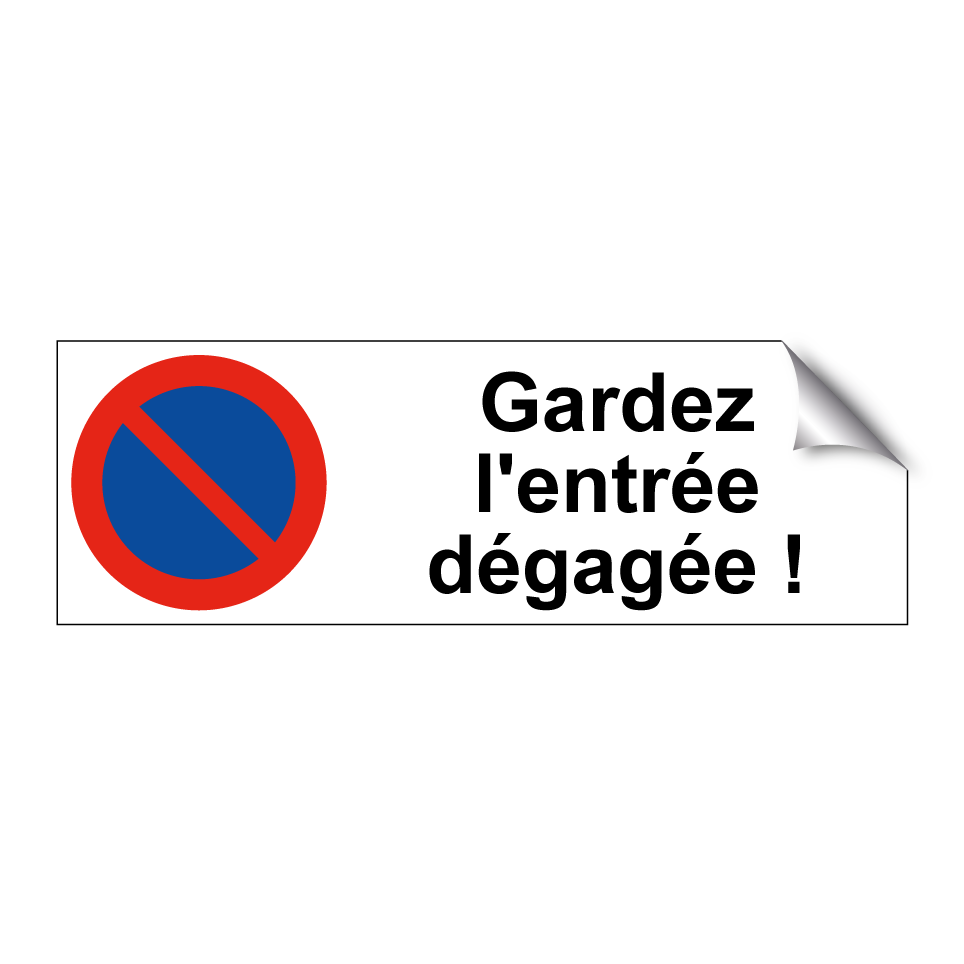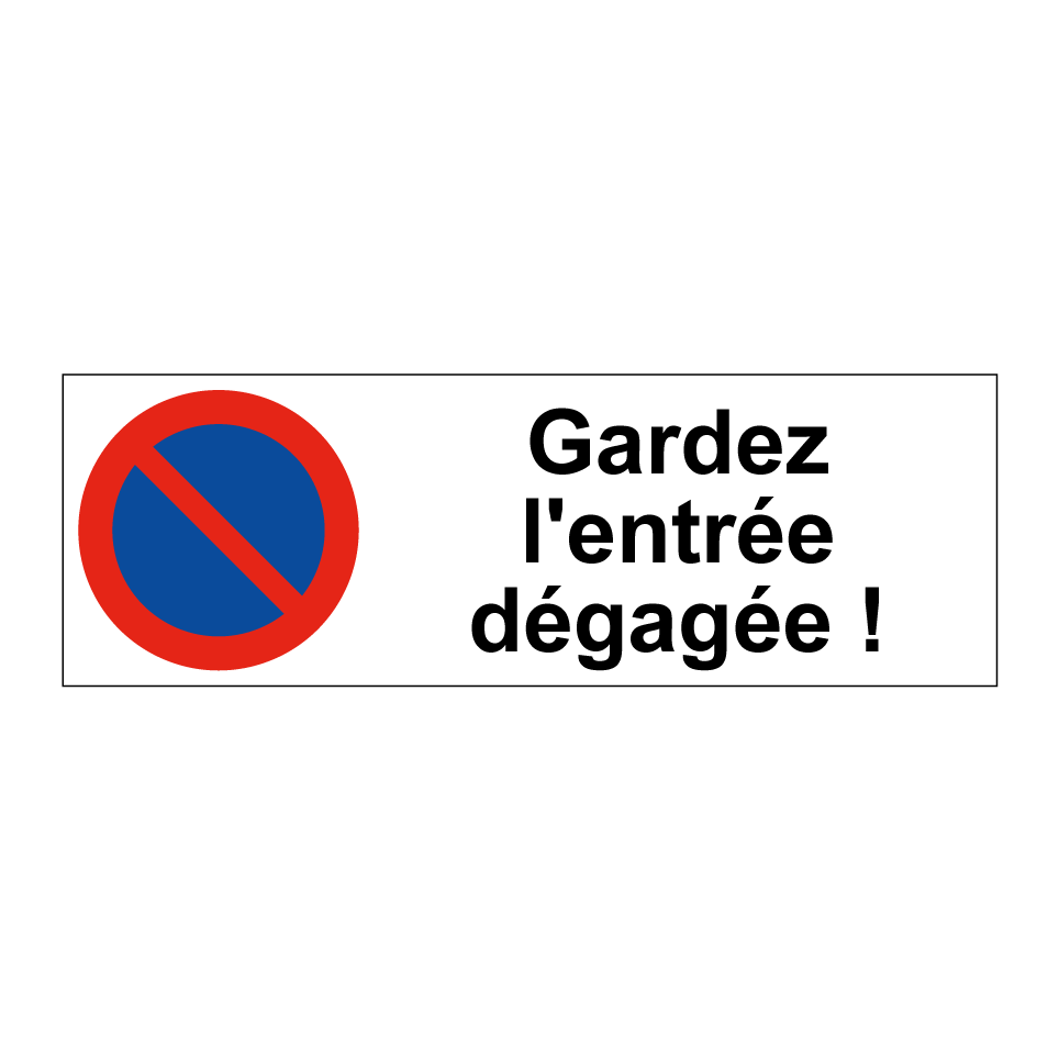 Panneau d'interdiction de stationner avec le texte : "Gardez l'entrée dégagée !" et une symbolique claire.