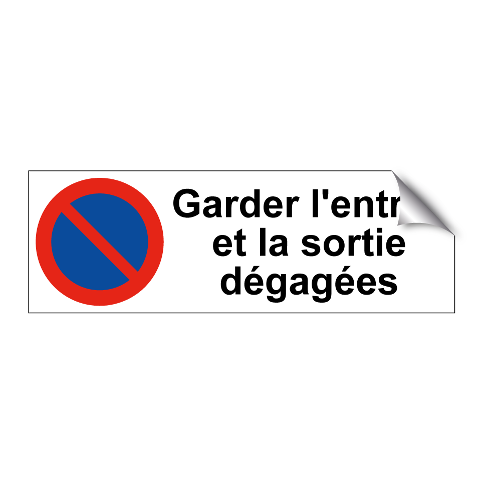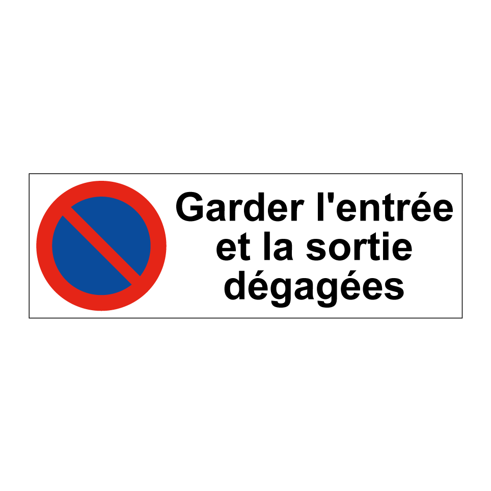 Panneau d'interdiction de stationner avec le texte : "Garder l'entrée et la sortie dégagées" et une symbolique claire.